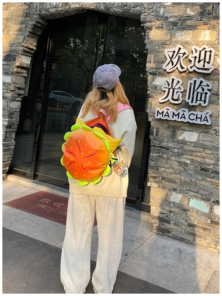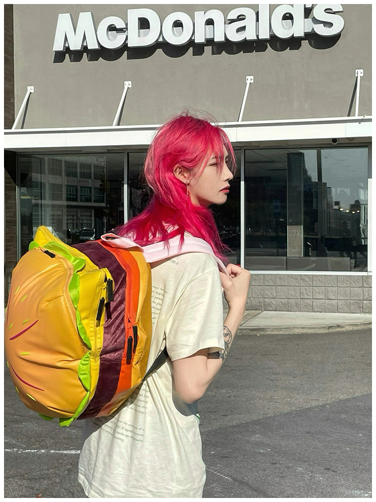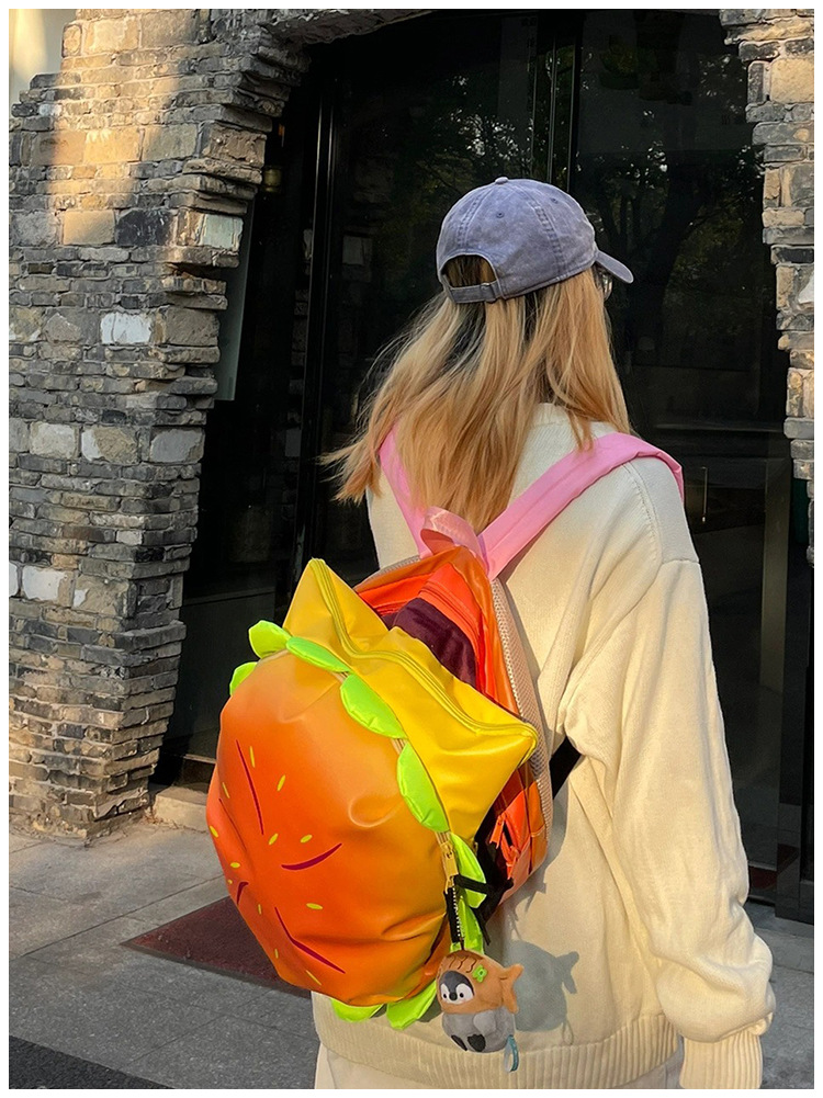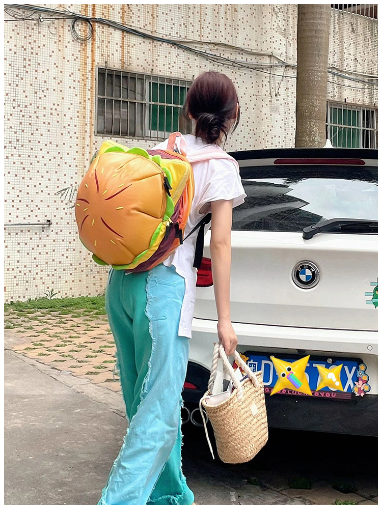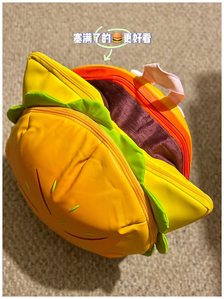 2025夏の新型かわいいハンバーガーアニメのリュックサックの女性の大容量は高い顔の価値のリュックサックをからかいます。