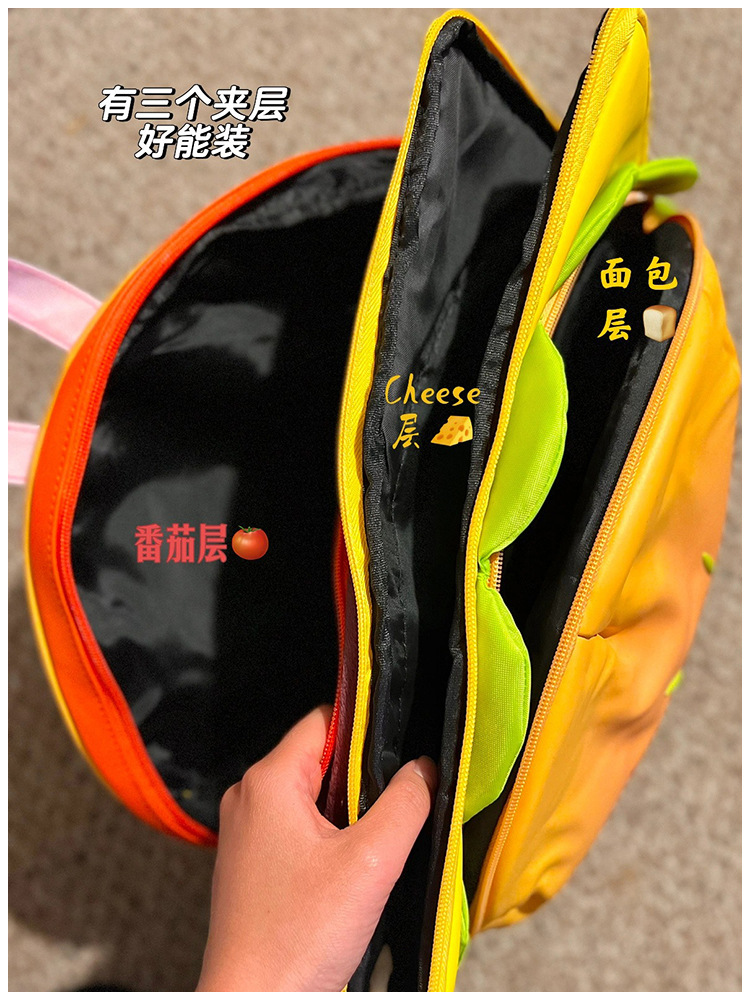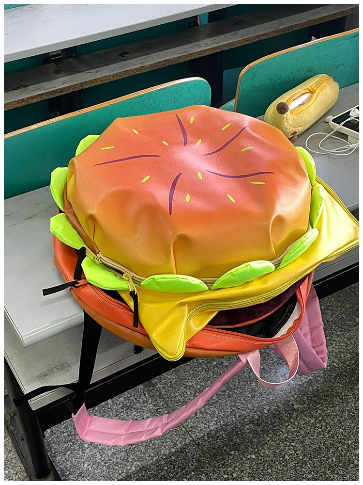 インターネット有名人と同じスタイルの漫画チーズバーガーバックパック、かわいい学生用スクールバッグ、キャンパス用中間層付き大容量バックパック