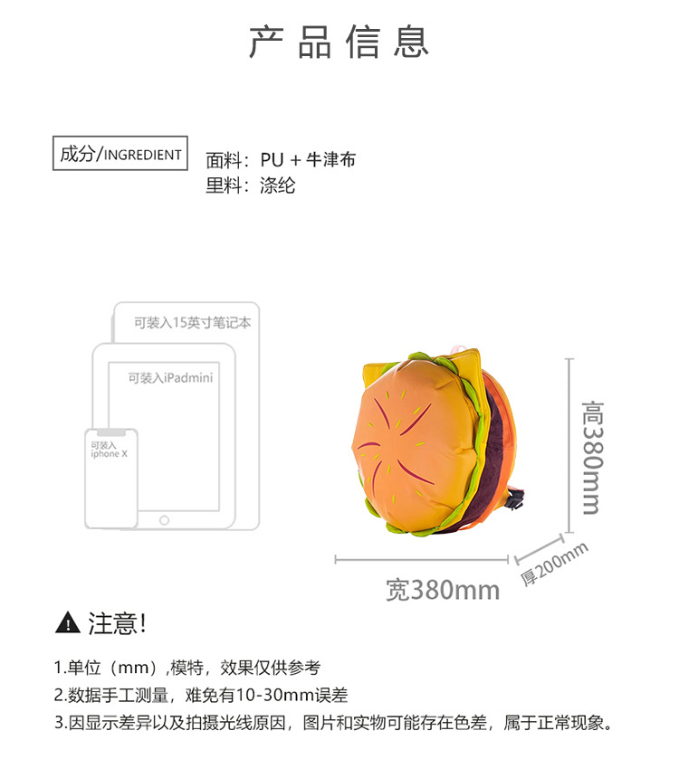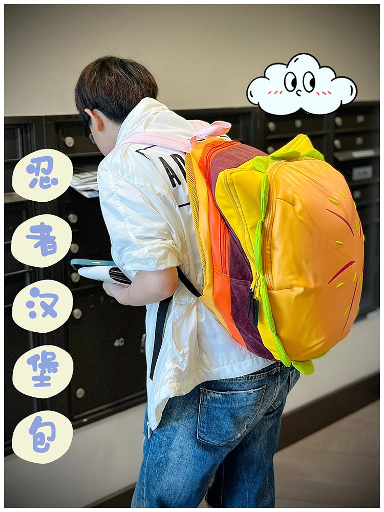 漫画の新しいキャンパス学生の同じスタイルのチーズバーガーバックパックかわいい大容量ハンバーガースクールバッグバックパック世代