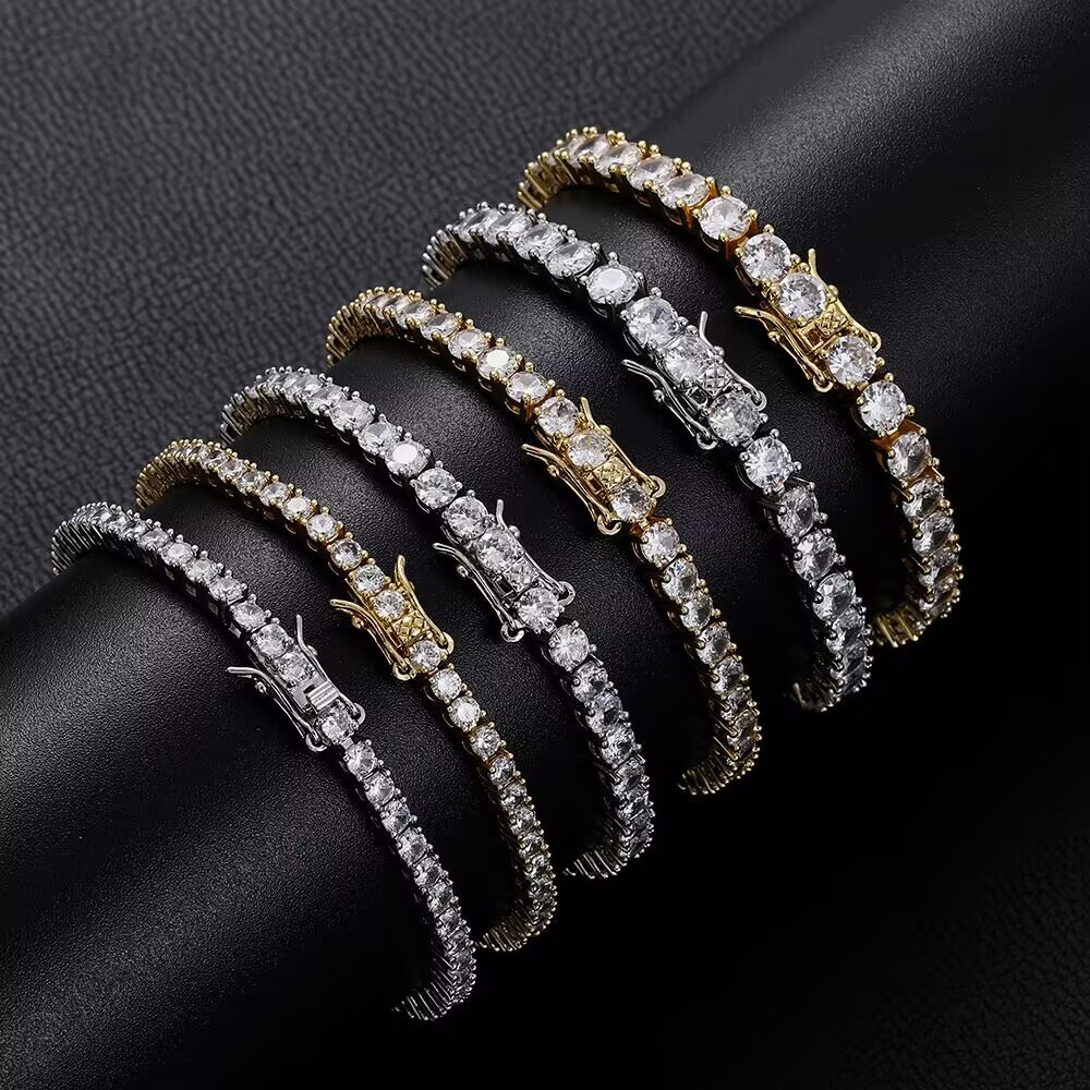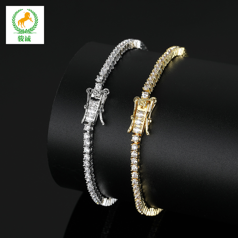 ヨーロッパとアメリカのヒップホップテニスブレスレット 3mm4mm5mm 単列ダイヤモンド銅マイクロ象嵌ジルコンブレスレットテニスチェーン