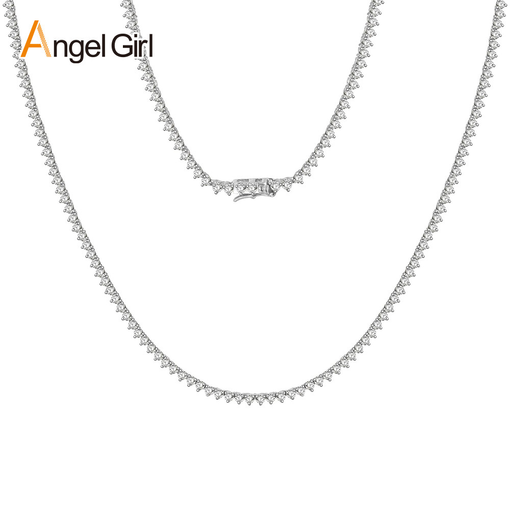 三爪テニスネックレス2mm 3mm 4mmヒップホップ銅にジルコンを入れた軽い豪華なアマゾン欧米の人気ファッション工場のバッチ