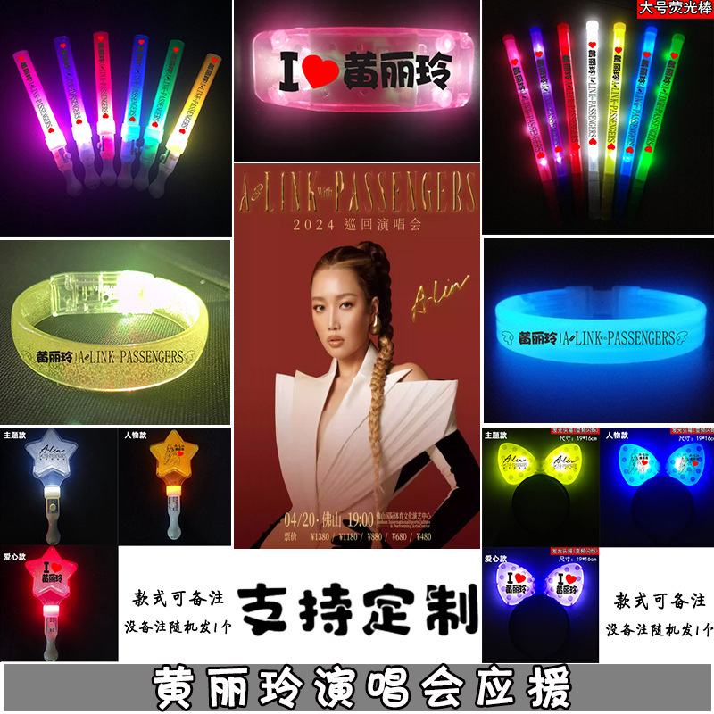 黄麗玲コンサートの閃光は蛍光棒を持って応援します。