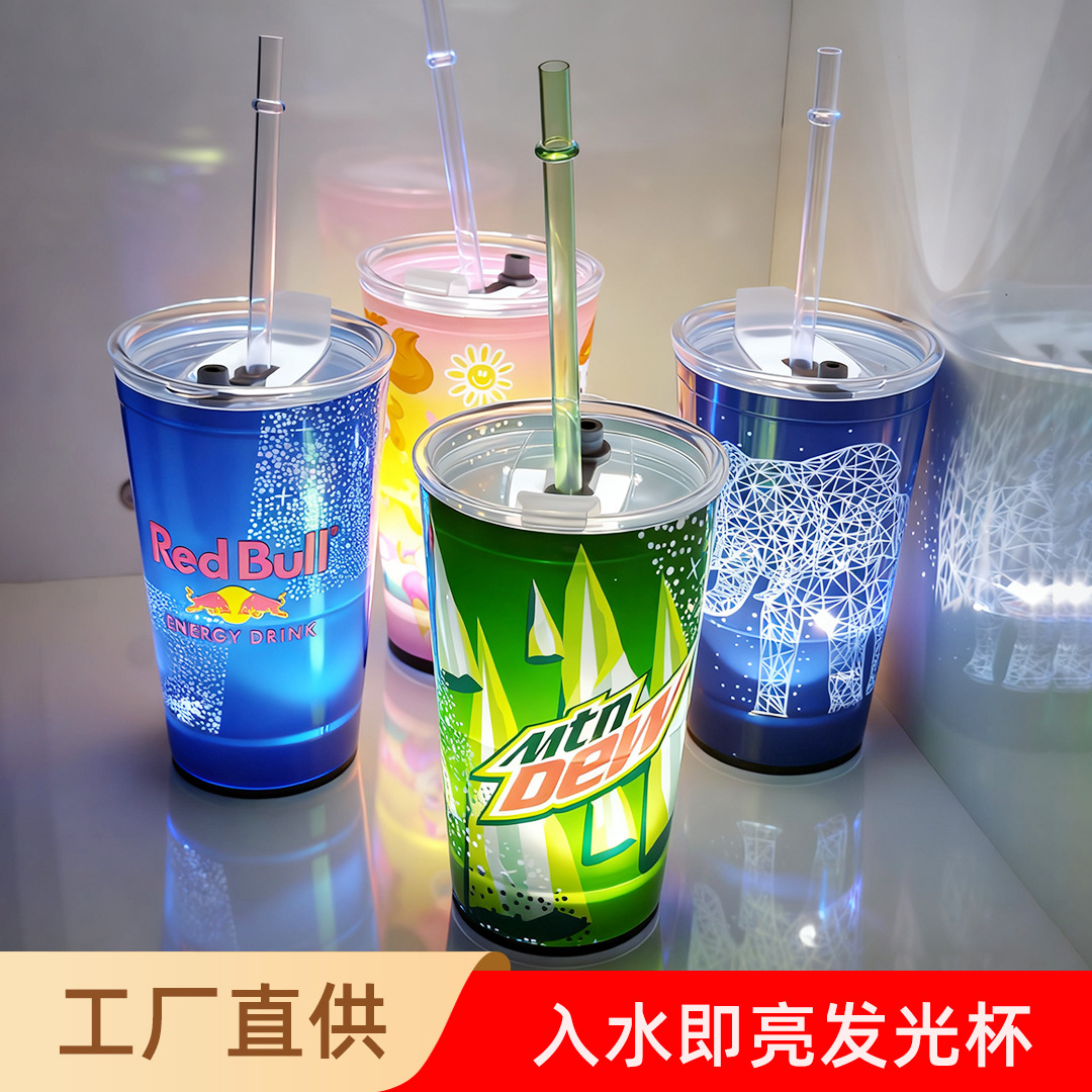 越境卸売カスタムストローカップ、水に浸けると光る、クリエイティブなバー用プラスチックLED発光カップ、ホリデーギフトカップ
