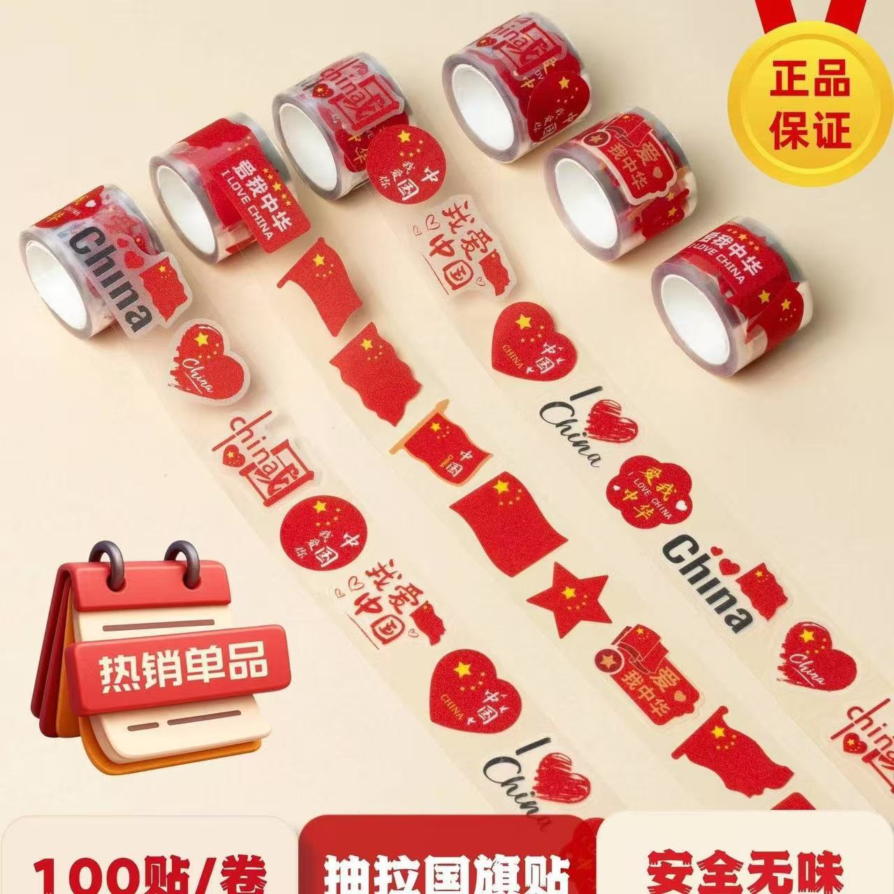 25新款国旗贴爱心贴五星红旗印花简约爆款国庆节新款无痕网红中秋