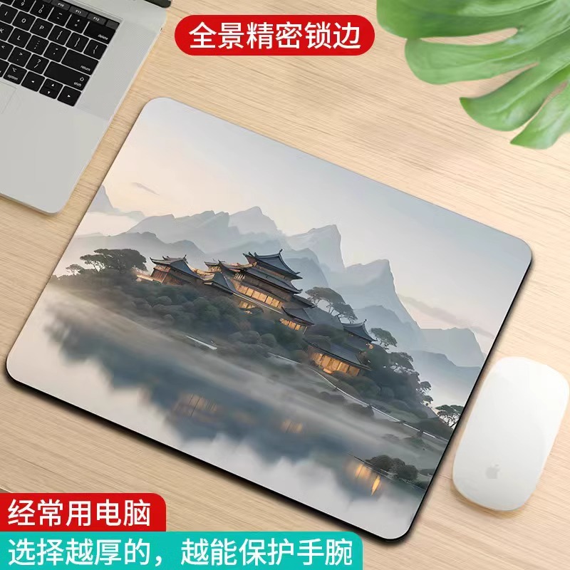 2025新款鼠标垫小号风景动漫游戏电脑键盘桌垫子办公护腕锁边加厚