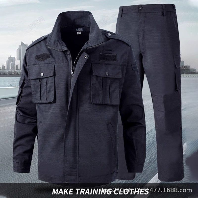 保安作業服セット男性長袖秋冬金に黒いツイルを厚くして耐摩耗性静電気防止保安訓練制服