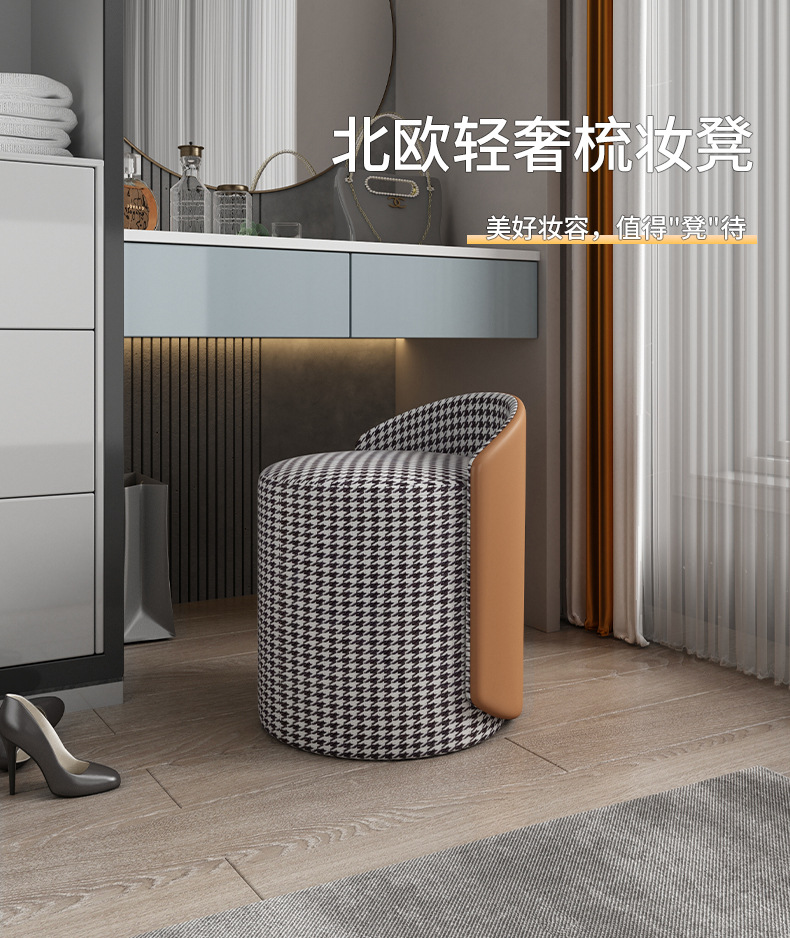 轻奢梳妆凳北欧网红化妆凳子家用梳妆台椅现代客厅简约美甲矮圆凳