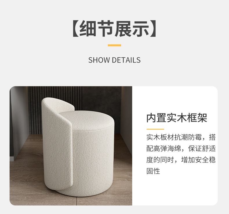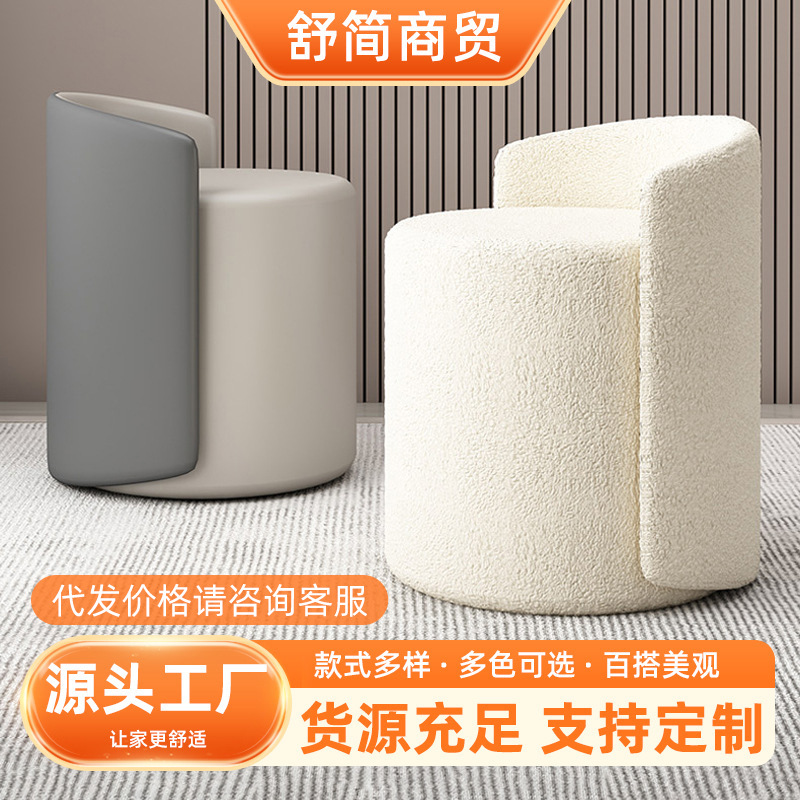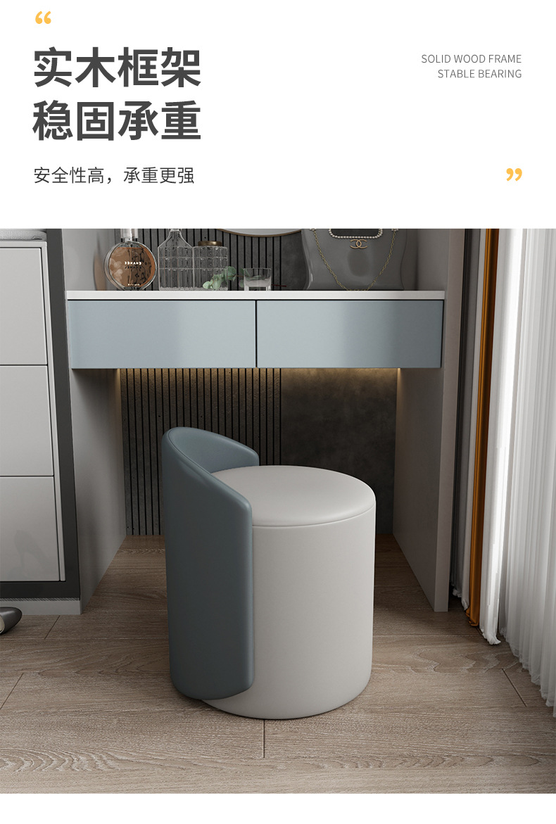 北欧化妆梳妆卧室家用轻奢梳妆台凳子网红客厅简约美甲靠背圆凳厂