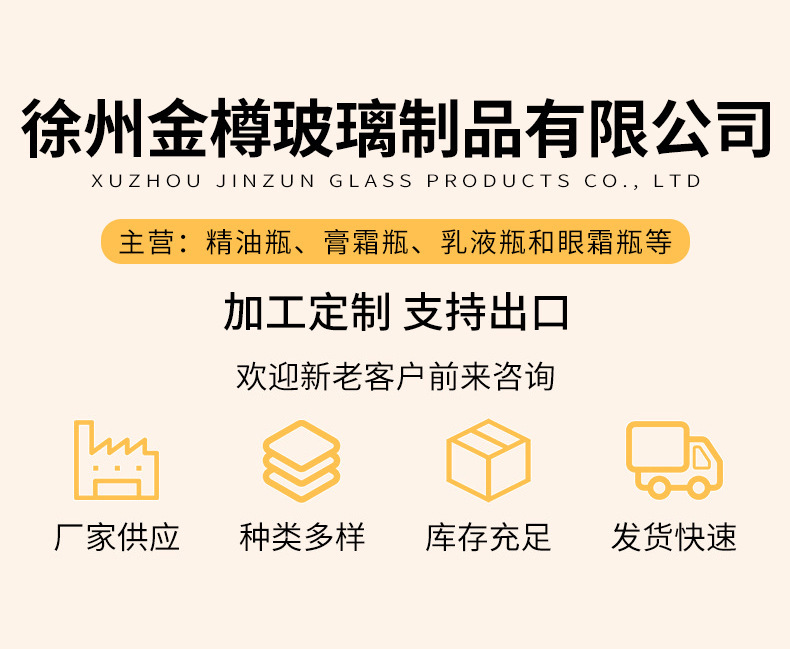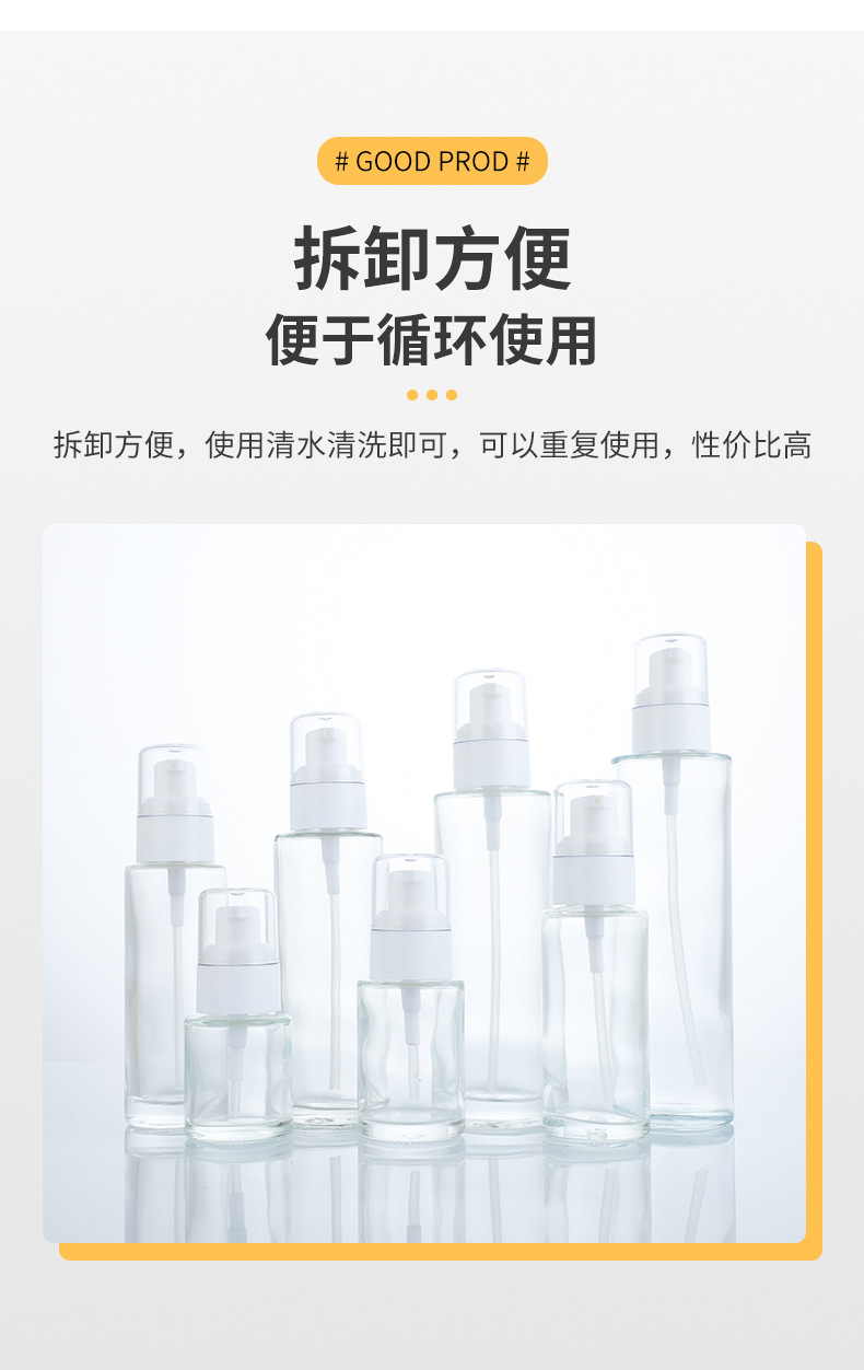 カスタムプレス乳液瓶スキンケア分注ガラス瓶卸売りファンデーション化粧品瓶透明精華液瓶