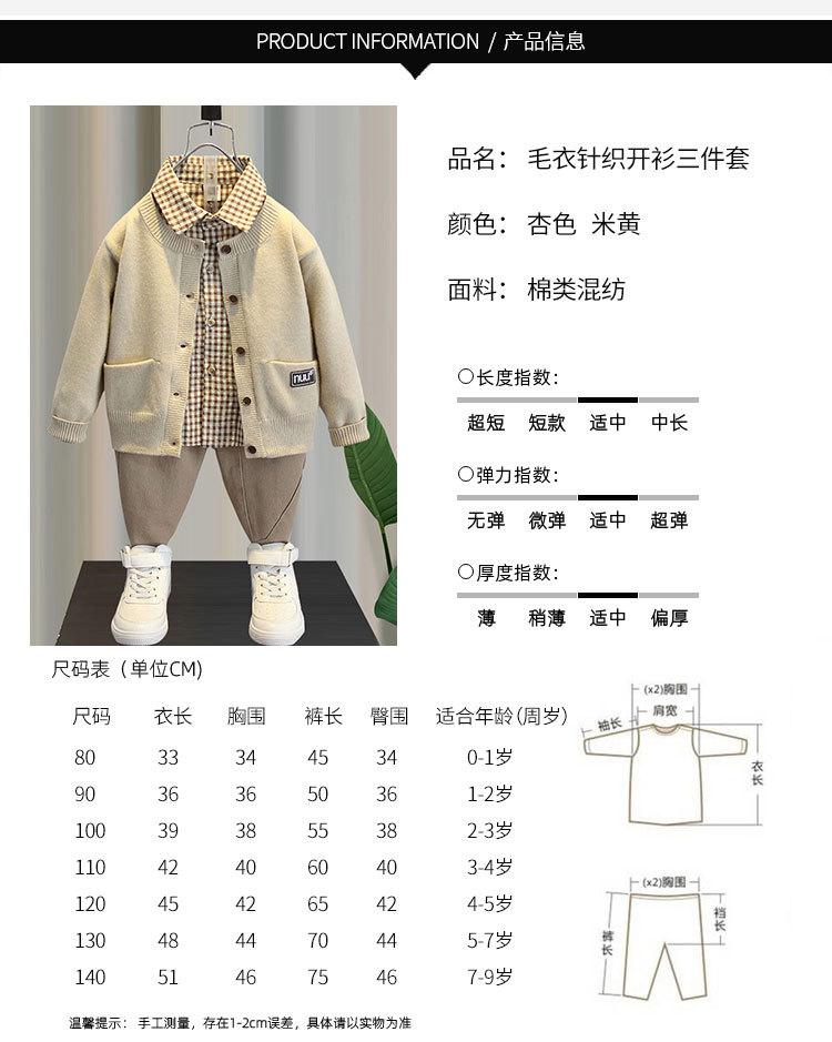 ベージュ (3点セット),アーモンドイエロー (3点セット),ベージュ (一枚のセーター),杏黄色 (一枚のセーター)