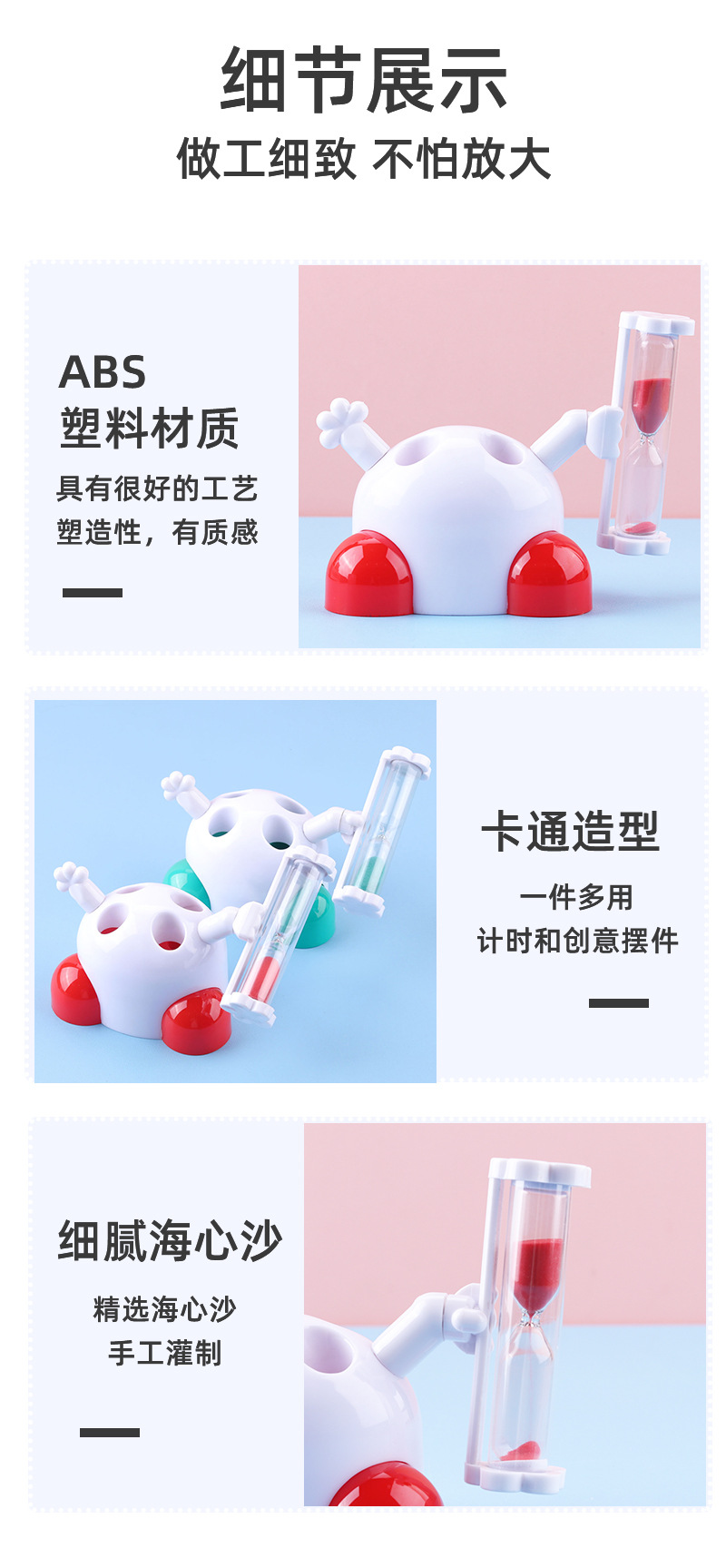 メーカー卸売りプラスチック四柱砂時計装飾品アイデアシンプルな純色砂時計プレゼント