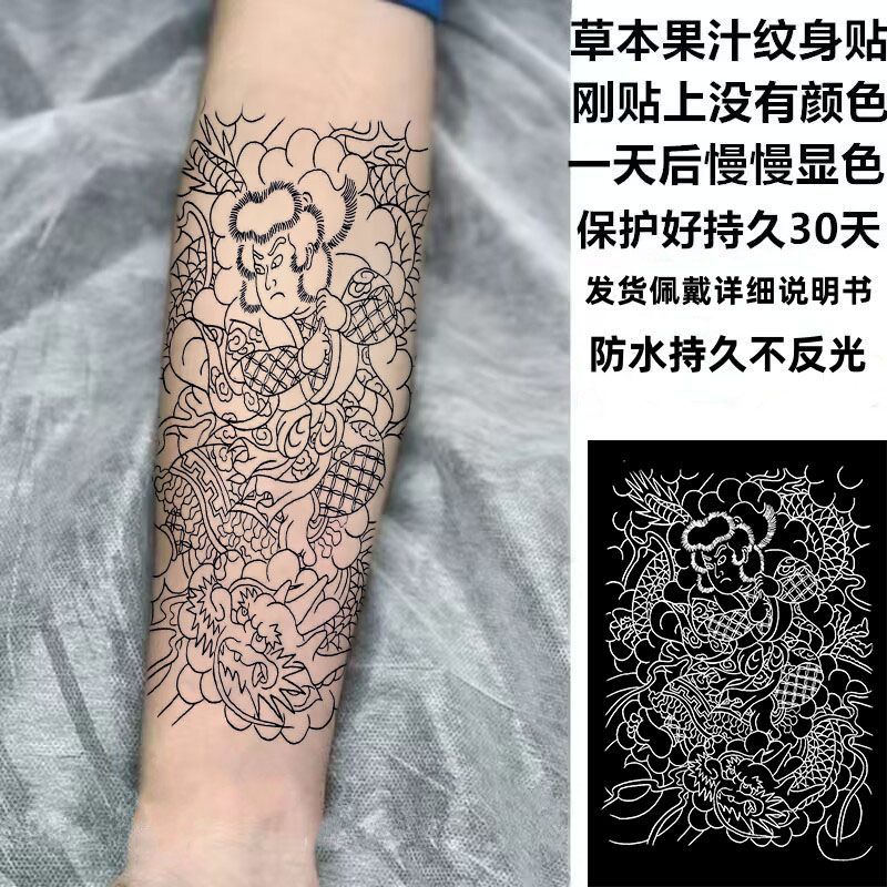 草本ジュース関公戦馬お笑い変な紋様が腕の半関羽二爺刺青を貼って防水して長持ちします。