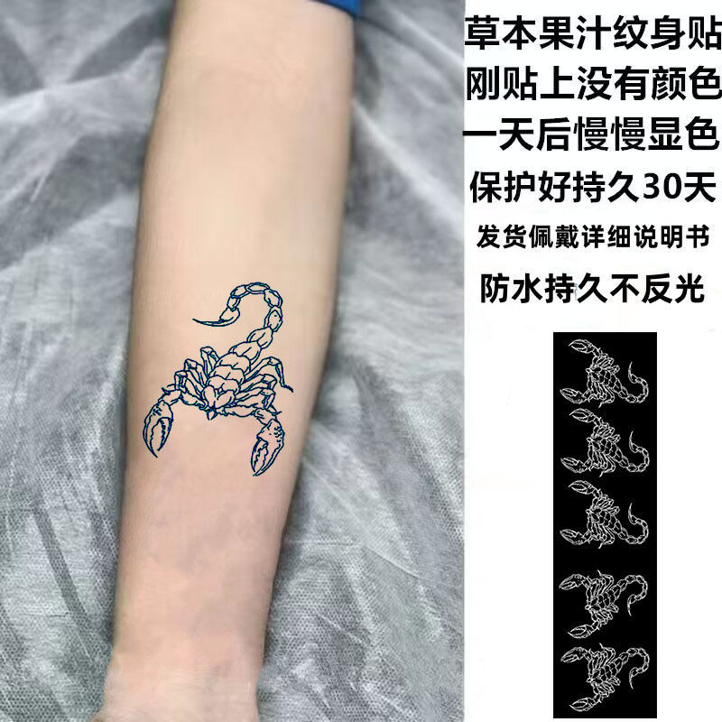 纹身酷帅草本手臂永久英文图案防水贴纸反光锁骨防搓果汁持久潮流