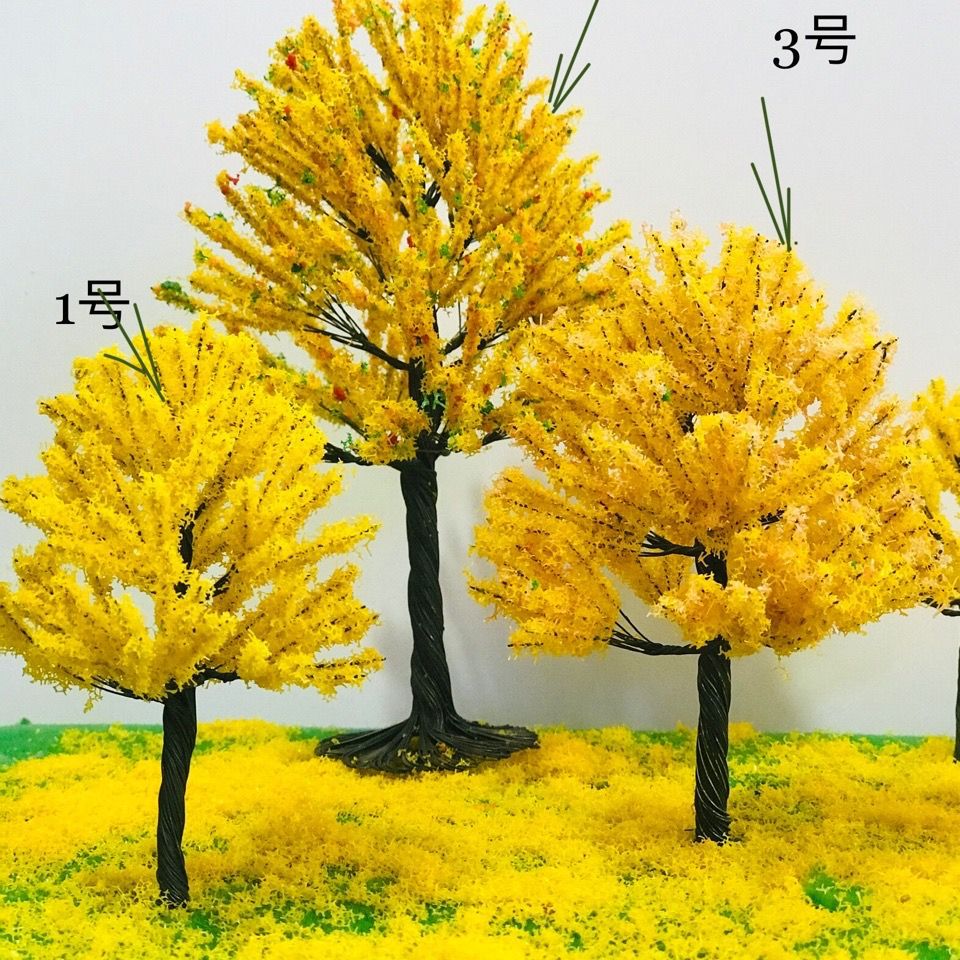 Diy黄色のイチョウの木のミニ砂盤の模型の木の針金の木の普通の幹は木の足の置物を持っています。
