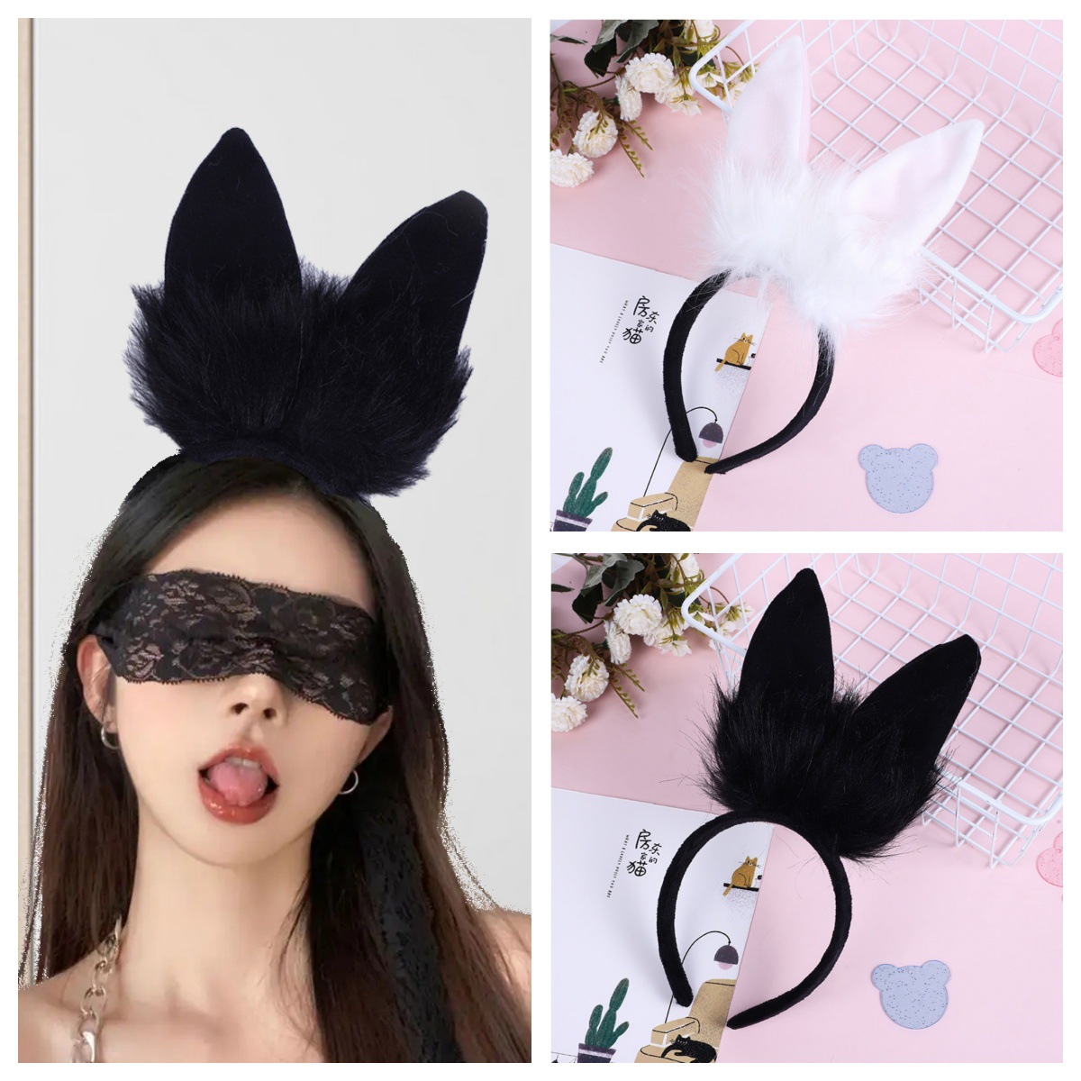 ぬいぐるみのウサギの耳のカチューシャの毛の髪飾り卸売女性ネットの赤い髪飾りネットの赤いlolitaキツネのウサギの女の子のカチューシャ