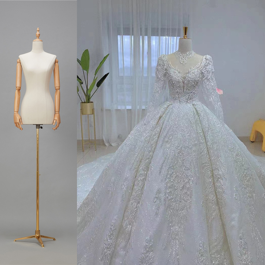ウェディングドレス店のモデル道具女装半身秀禾ウェディングドレス専門展示棚ダミー服金色モデルスタンド