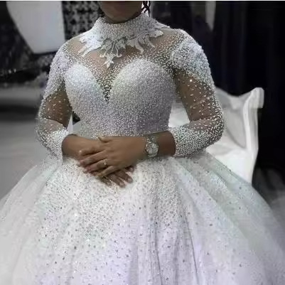 2023新型アマゾン対外貿易ウエディングドレスアフリカクロスボーダー花嫁結婚長袖ウエディングドレスメーカーの供給源