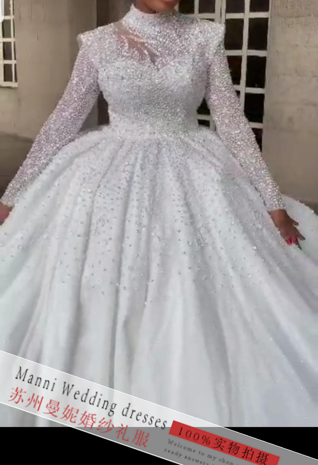 アマゾンの新しい外国貿易ウェディングドレスクロスボーダーアフリカの花嫁の結婚式ディープVラインストーンレース長袖ウェディングドレス