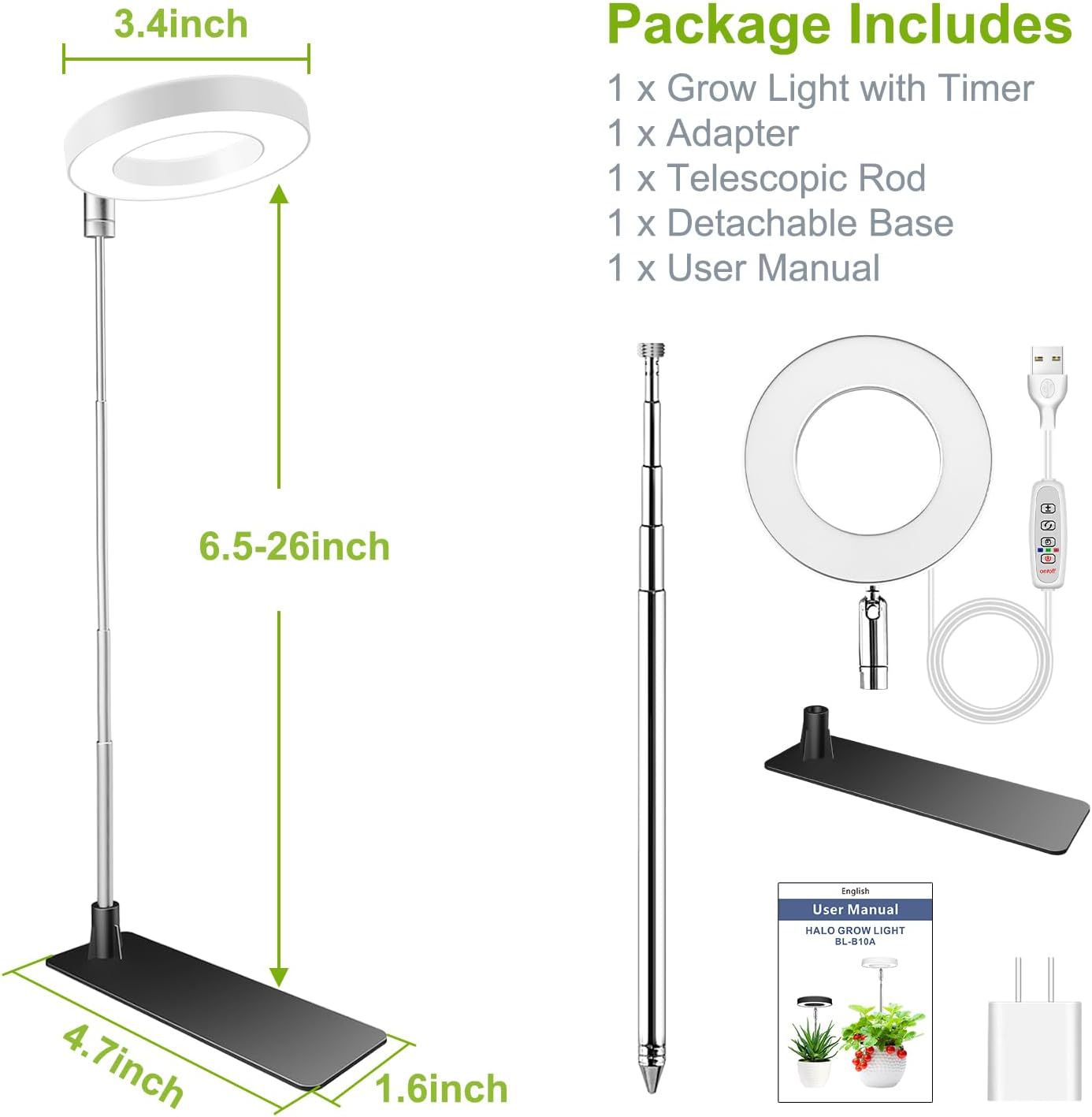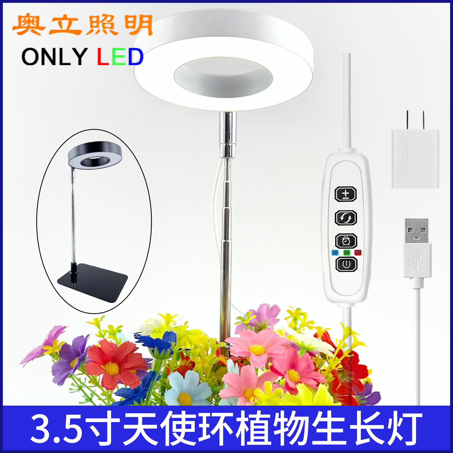 亚马逊爆植物灯LED植物生长灯全光谱天使环多肉光灯家用种植