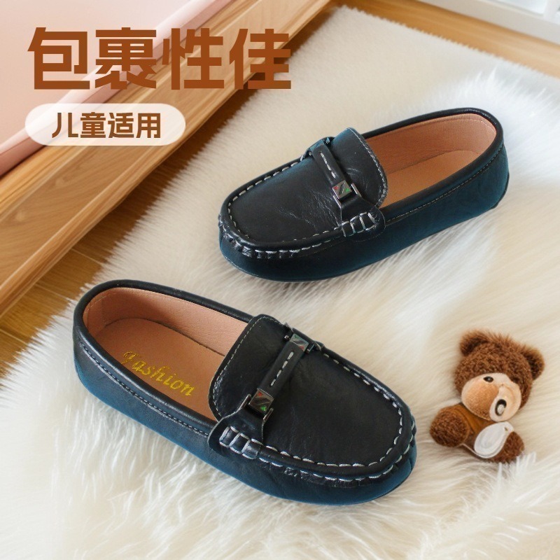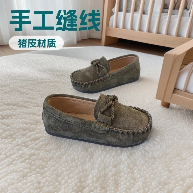 韓国風子供用豆豆シューズ、幼児用革靴、ヌバック革靴、学生用パフォーマンスシューズ、越境EC子供靴