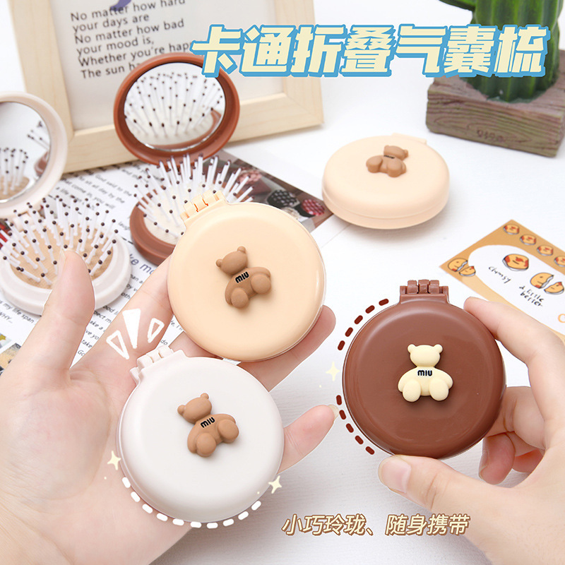 Ins風かわいい熊エアマット櫛折り畳み鏡櫛携帯マッサージエアバッグ櫛ミニ化粧鏡卸売り