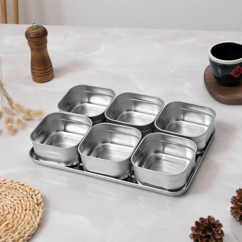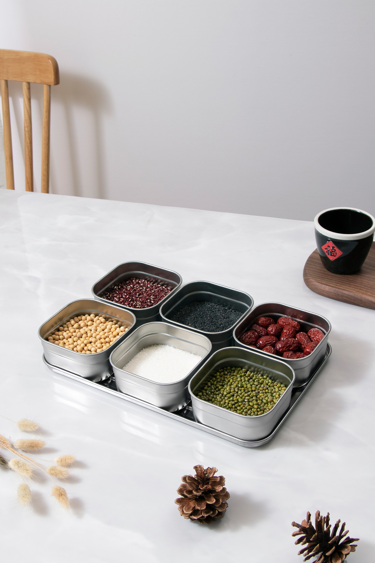 ステンレス製蓋付き調味料ボックス、6区画/8区画、業務用キッチン、氷粉材料ボックス、収納ボックス、屋台用調味料ボックス