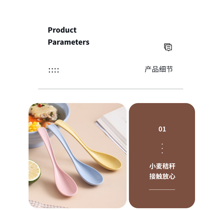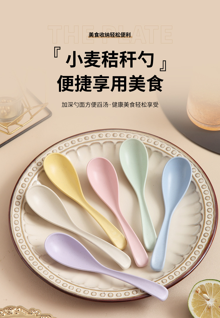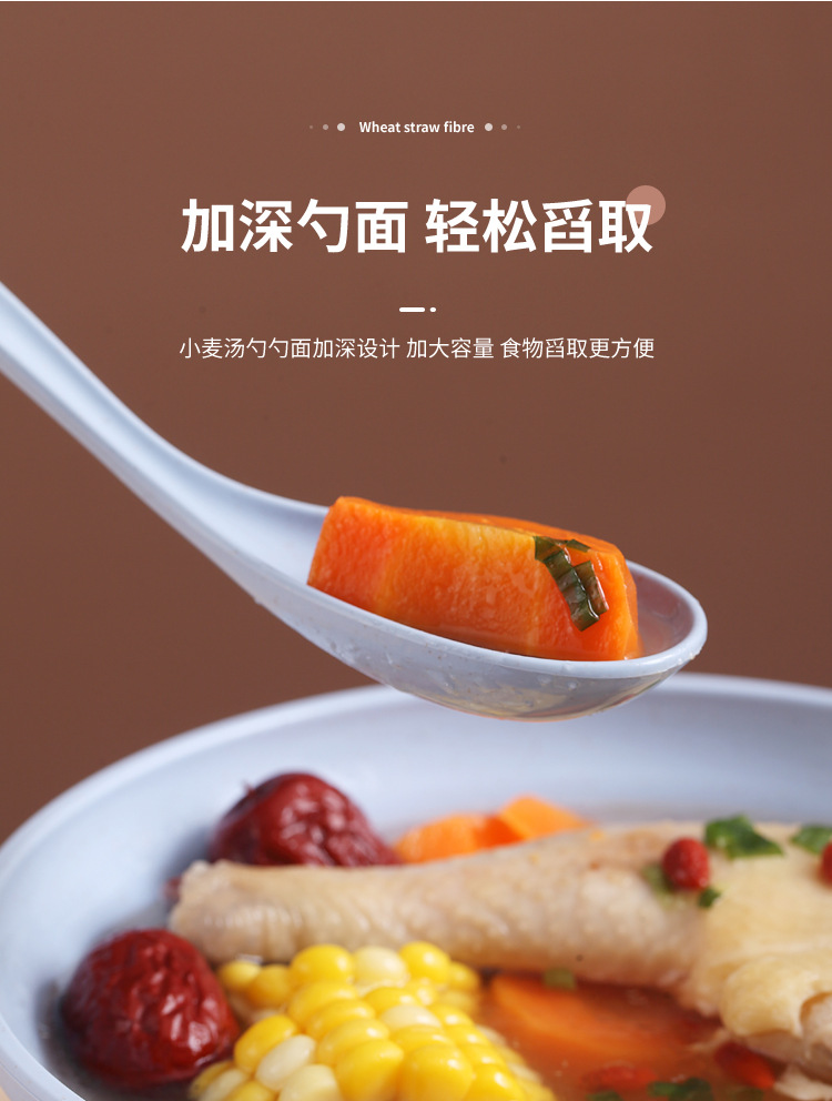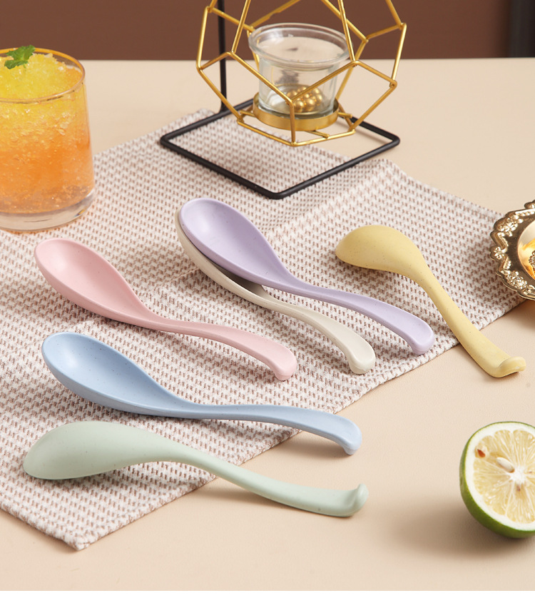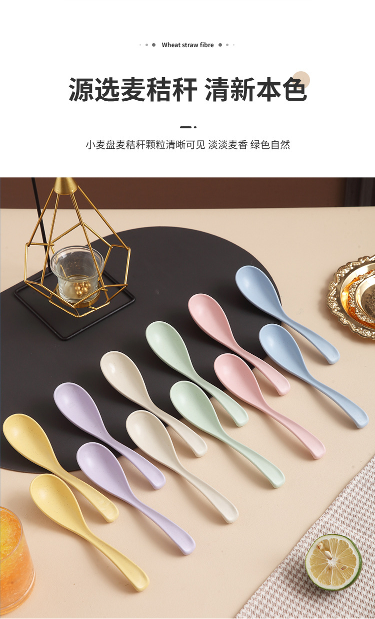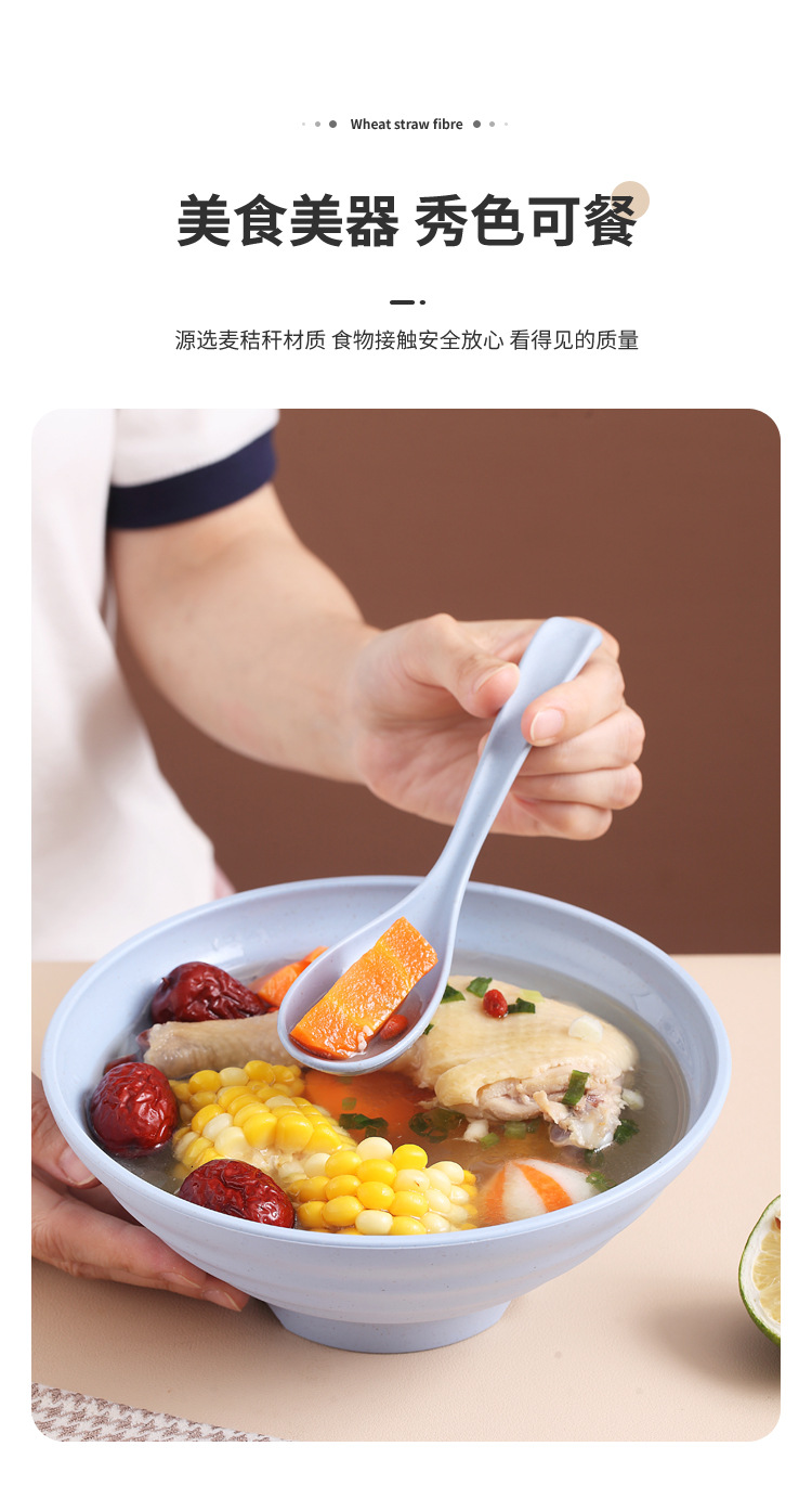 小麦わらの長いスプーン家庭用高温防止スープ深口ラーメンスプーン米線食堂長柄スプーン