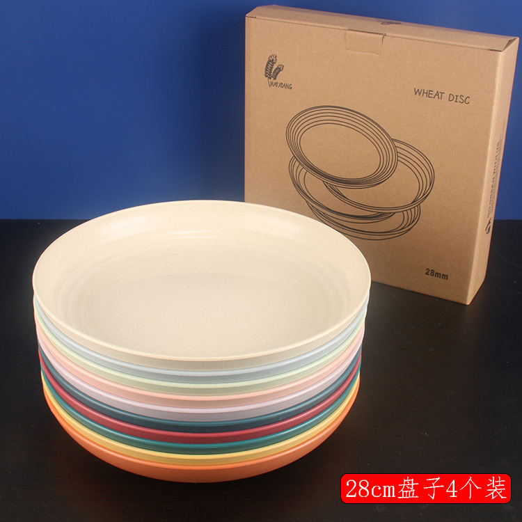 28cm円盤4個入り小麦わらケーキ皿果物皿転倒防止家庭用皿レストラン料理皿食器