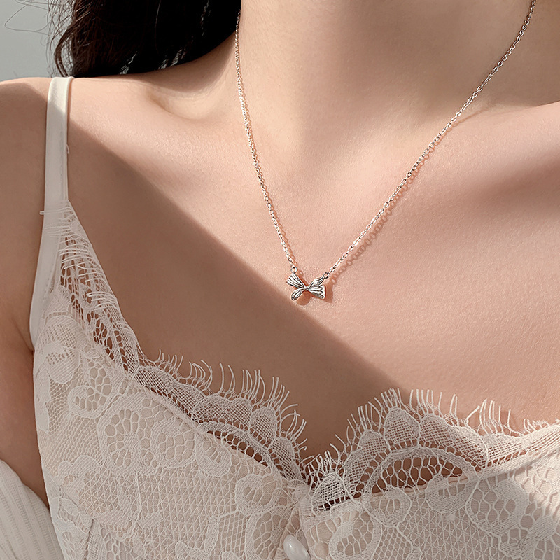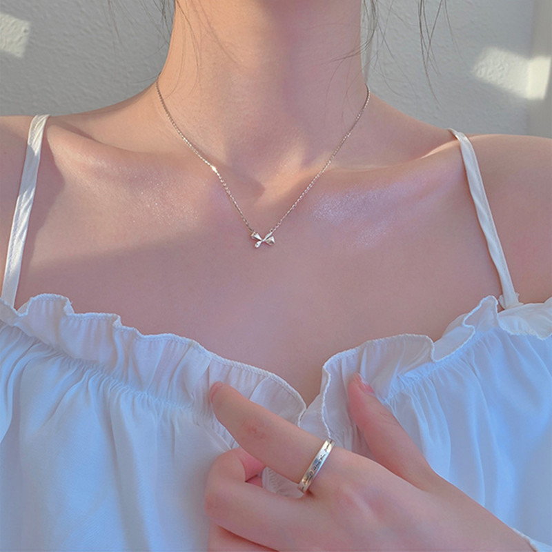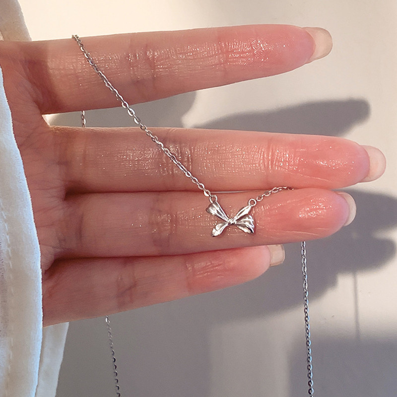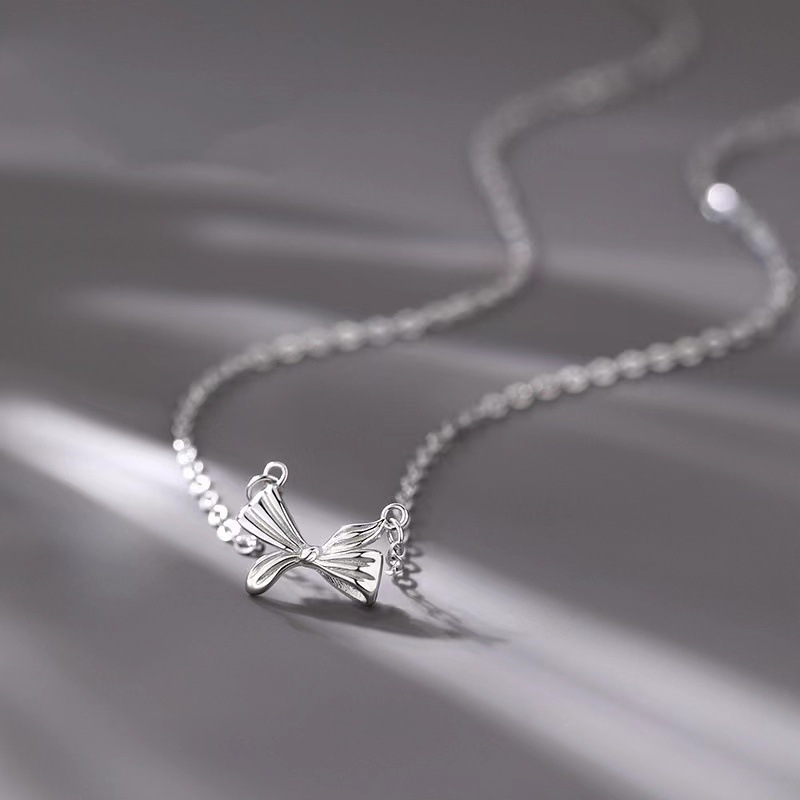 蝶結びのネックレスのペンダントの少女の心の小清新はダイヤモンドの鎖のチェーンの贈り物を入れます。