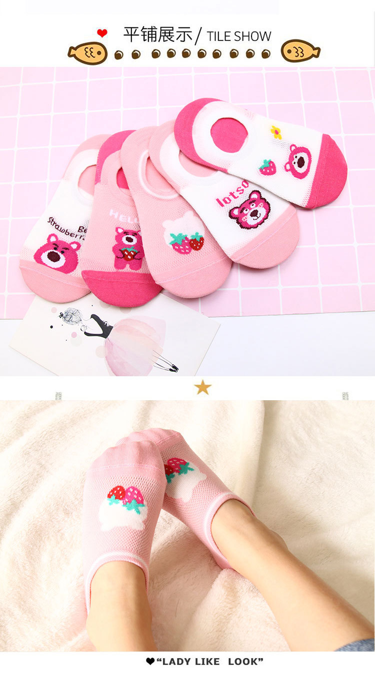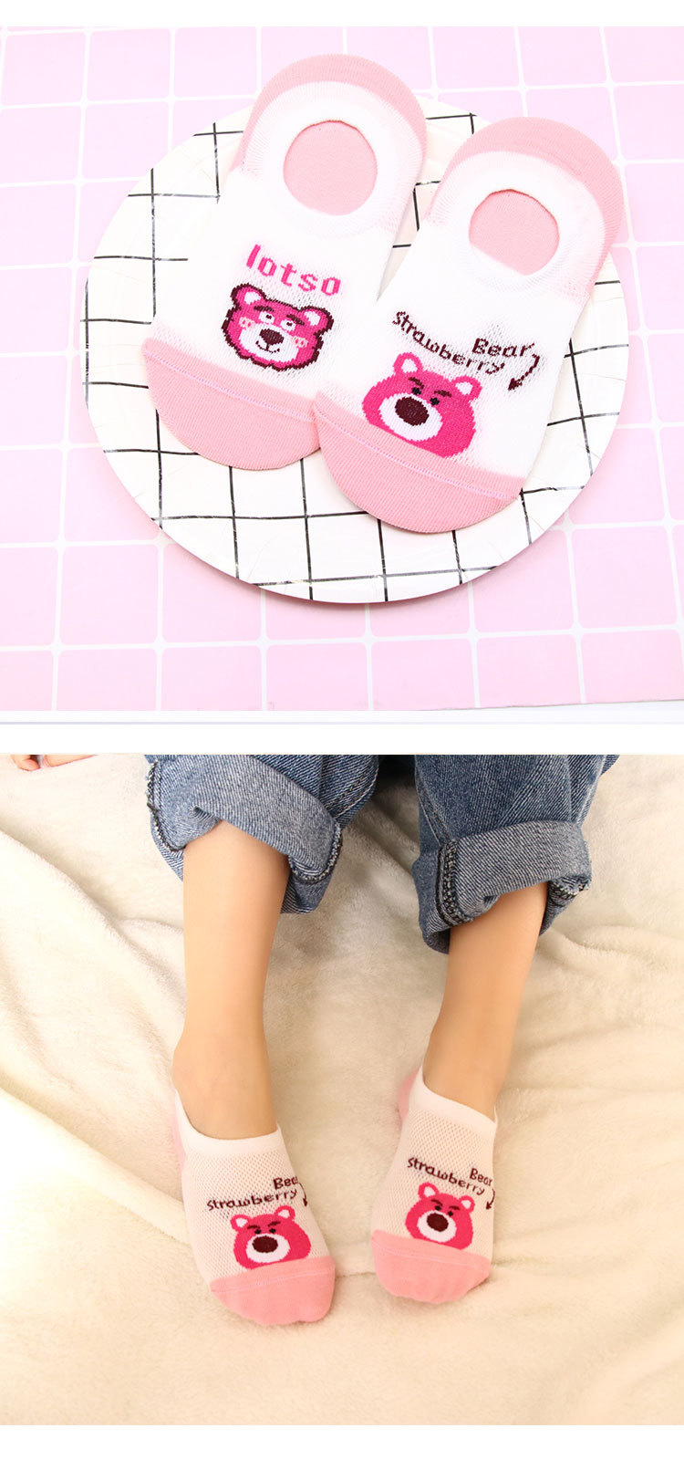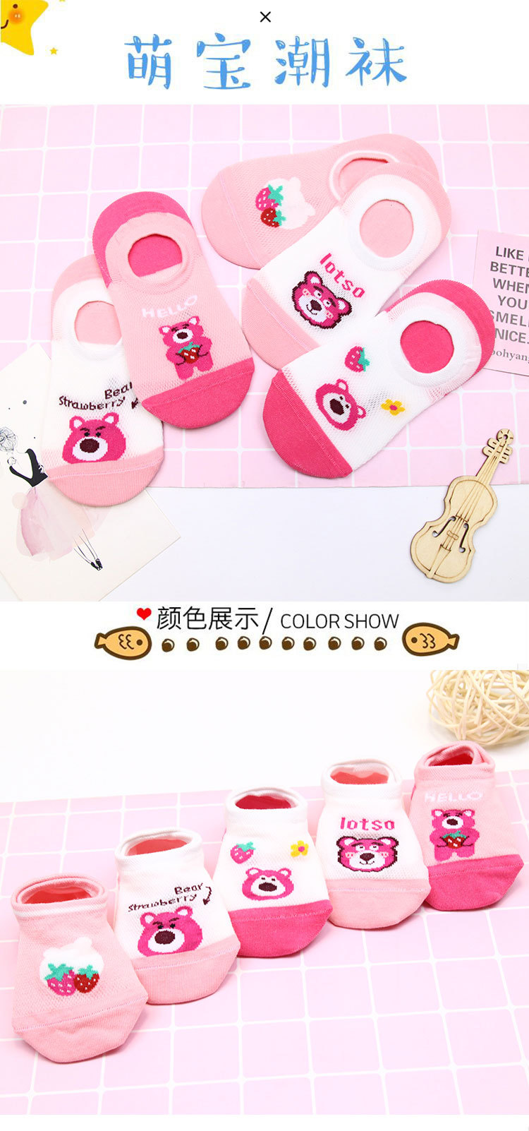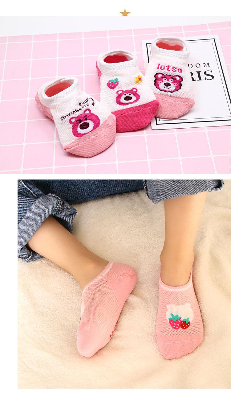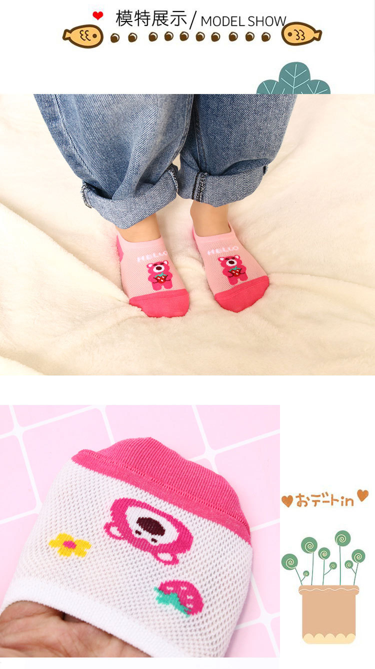 卸売りの新型の子供の靴下の女の子の船の靴下の漫画のかわいい熊のメッシュのピンクの女の子の床の靴下の隠れた靴下