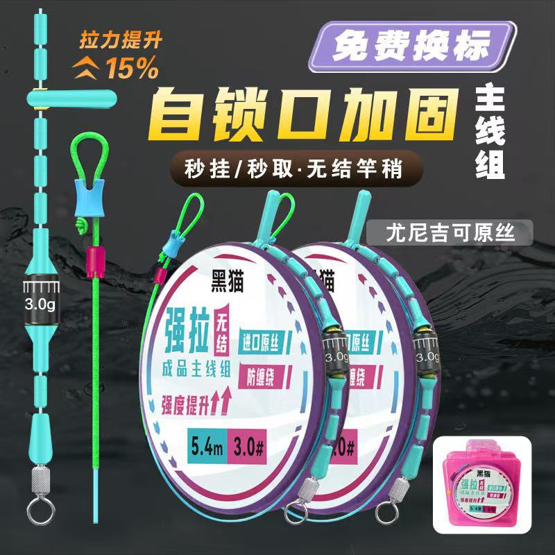 黑猫厂家批发加强无结八字环金刚结黑坑竞技全无结台钓鱼线主线组