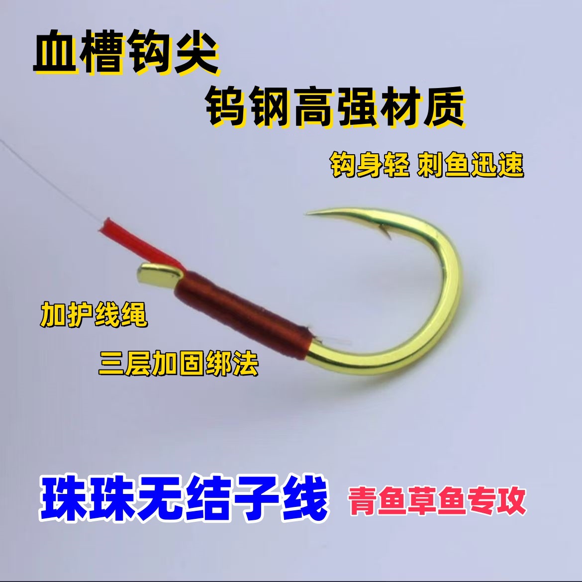 黑坑青草鱼珠珠无结子线金色加强千又伊势尼三重加固轻量大物鱼钩