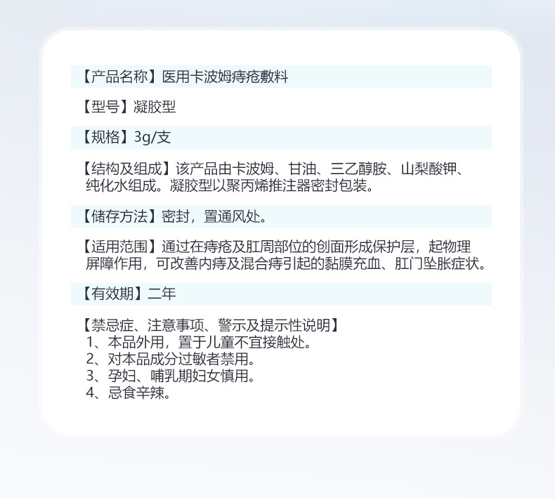 二类盈康医用卡波姆痔疮凝胶敷料消内外痔混合痔肉球便秘代发批发