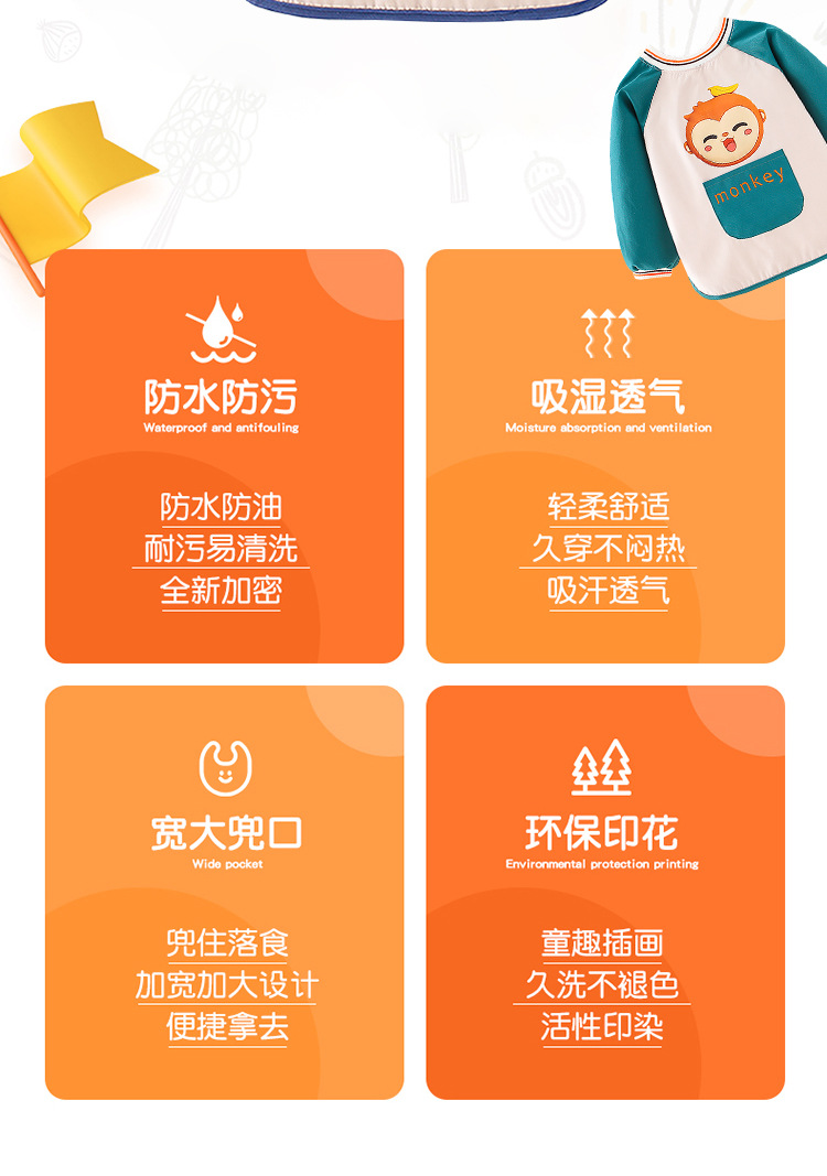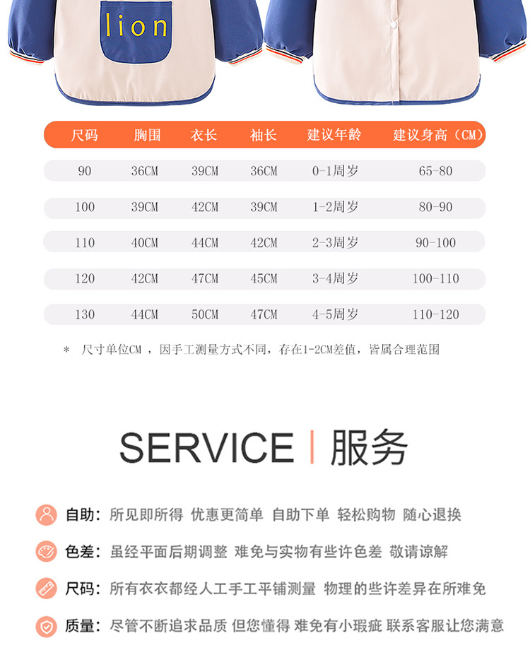 子供用カバー純綿防水長袖反着赤ちゃん食事服エプロン子供幼児ベビー園秋冬保護服