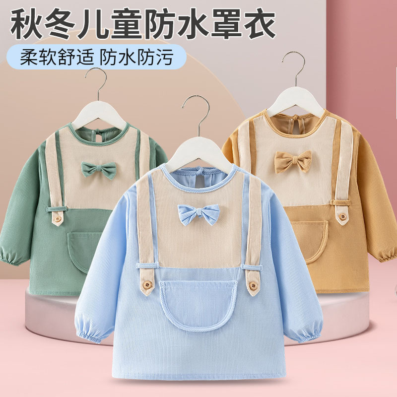 宝宝罩衣吃饭防水防脏围兜儿童秋冬外穿护衣幼儿园反穿衣画画围裙