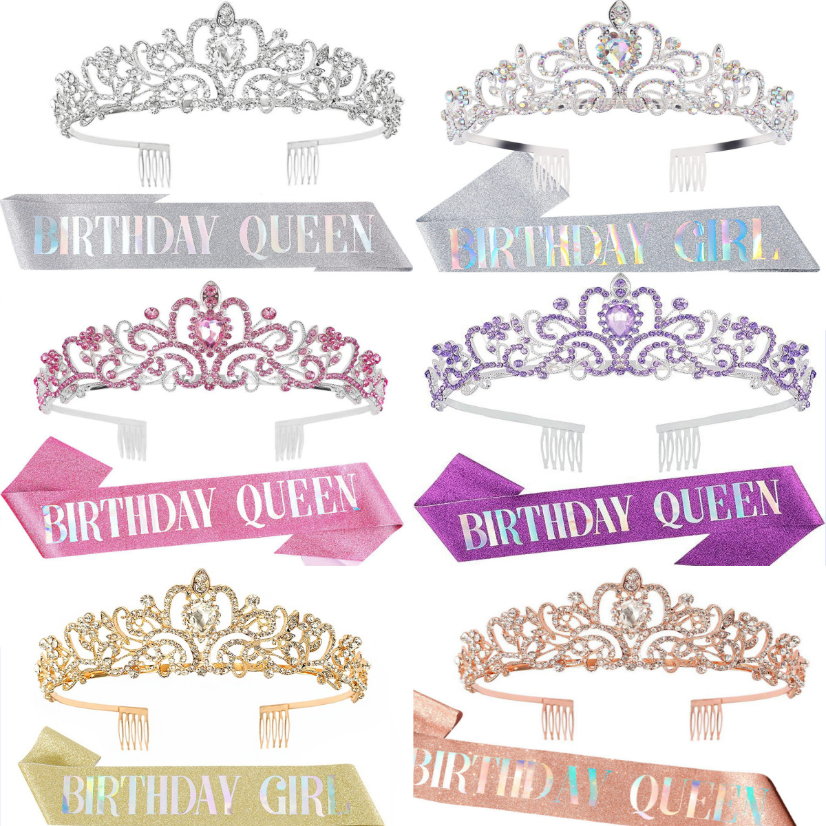 ヨーロッパとアメリカの合金ホットセール誕生日クラウンショルダーベルトヘアフープ誕生日クイーン/ガールセット誕生日ショルダーベルト