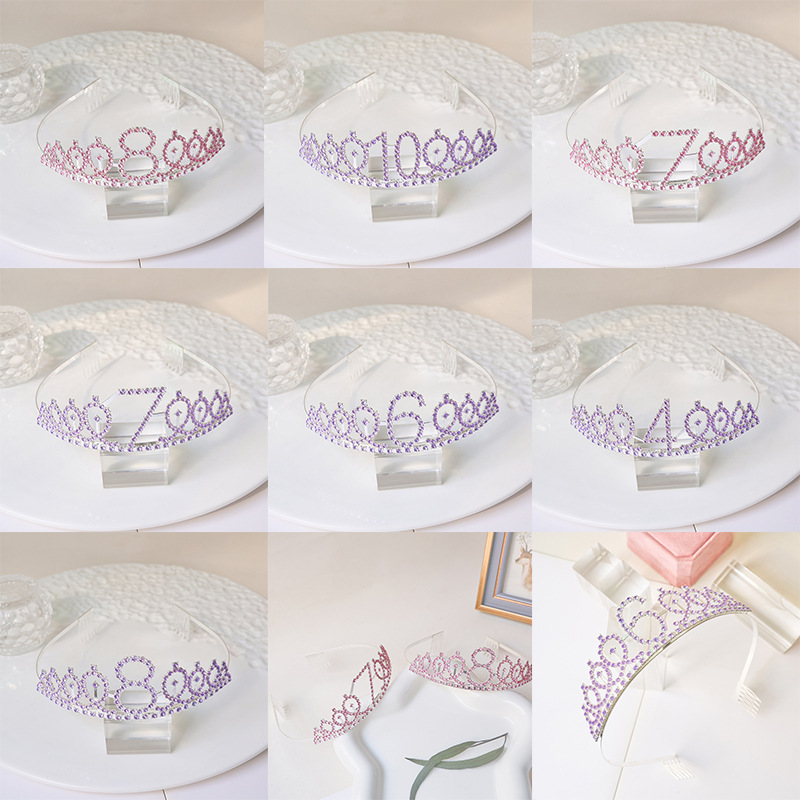 欧美数字生日皇冠头箍蛋糕派对会水钻发饰周岁数字生日帽合金发箍