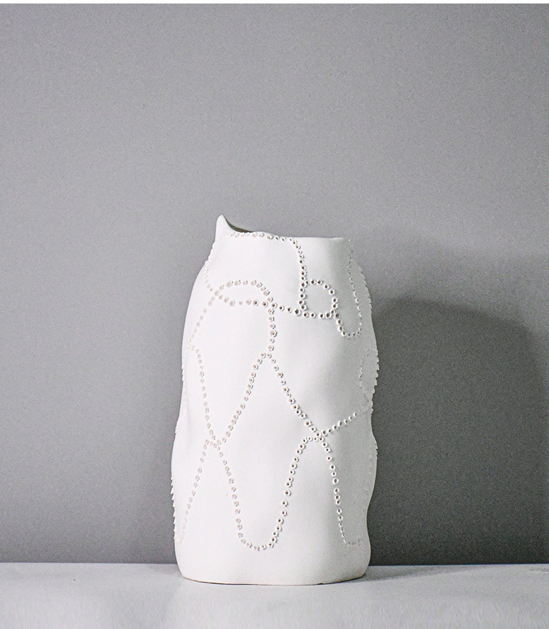 モダンでシンプルな白い彩筆抽象陶器置物、本棚、ワインキャビネットの装飾品、ホテルのモデルルームの花瓶