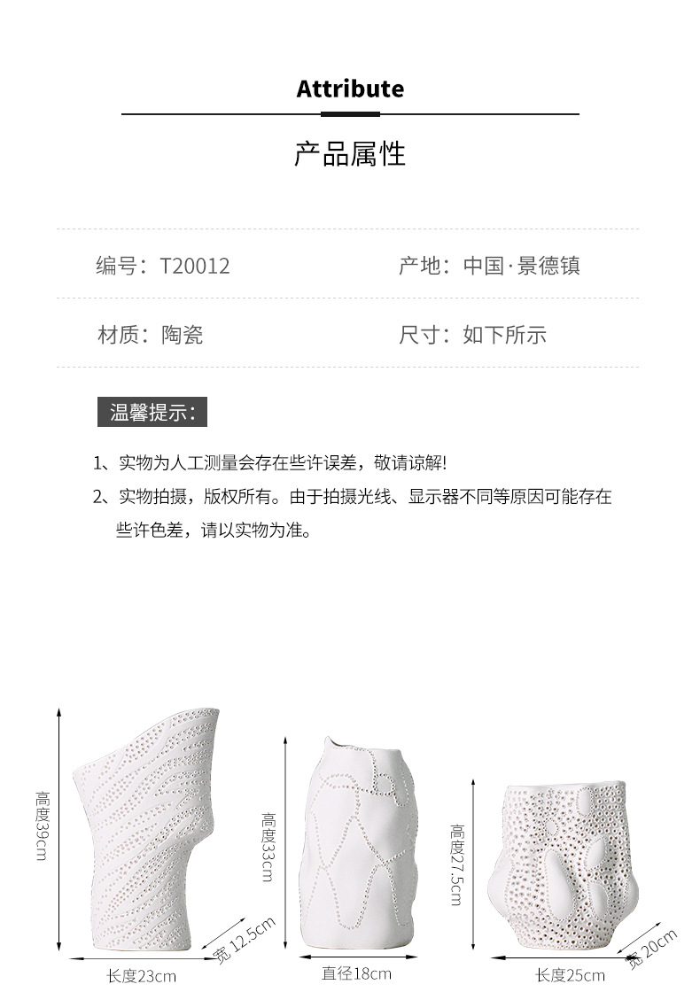 創意北欧シンプル創意花瓶装飾多孔現代客間レストランサンプル間家庭工芸品置物