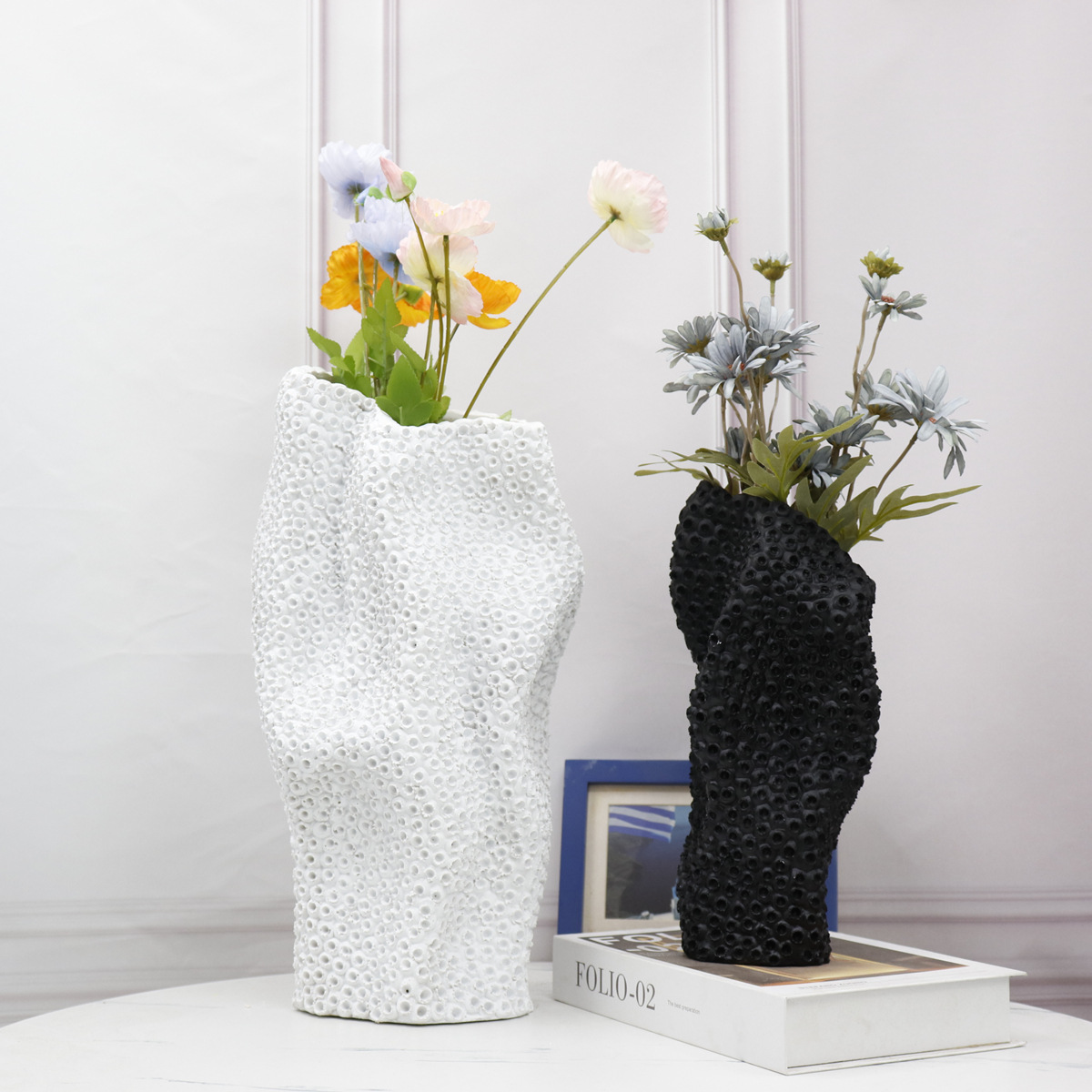 モダンシンプル不規則異形3Dセラミック花瓶サンプル間リビング玄関生け花飾り花器