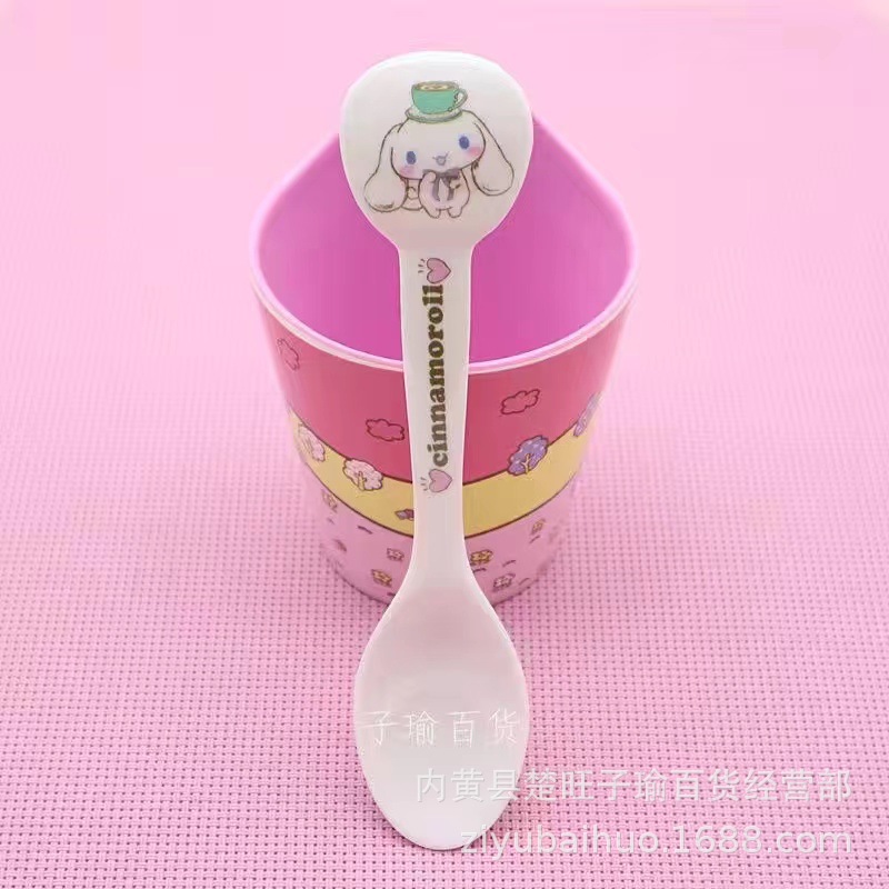 漫画かわいいメラミンスプーン子供学生長柄スプーンスープ模造磁器美耐皿家庭用食器耐落下
