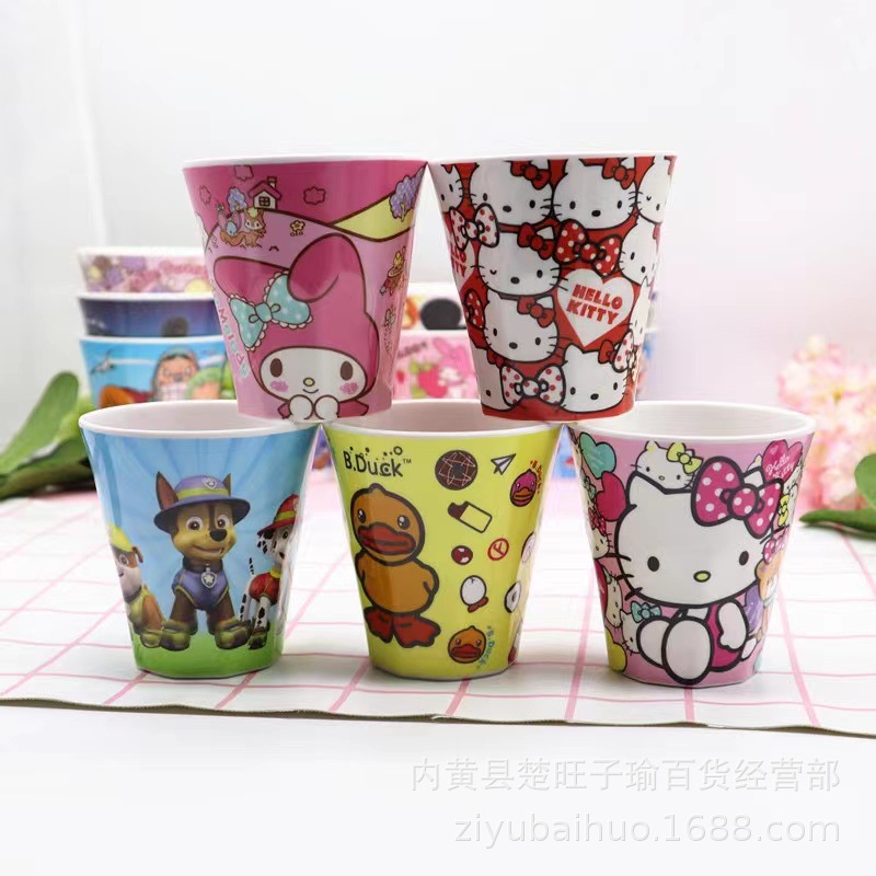 赤ちゃんのコップのかわいい漫画の子供のメラミンは転んで幼稚園の少女の子供に耐えられます。