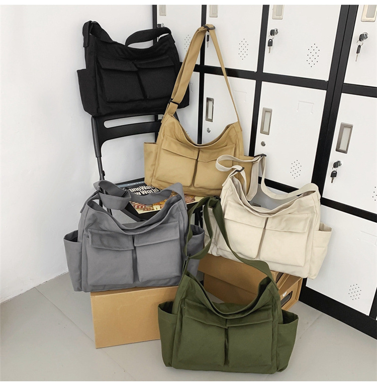 大学生の授業中の通勤バッグ女性2024新作春夏大容量キャンバスショルダーバッグ