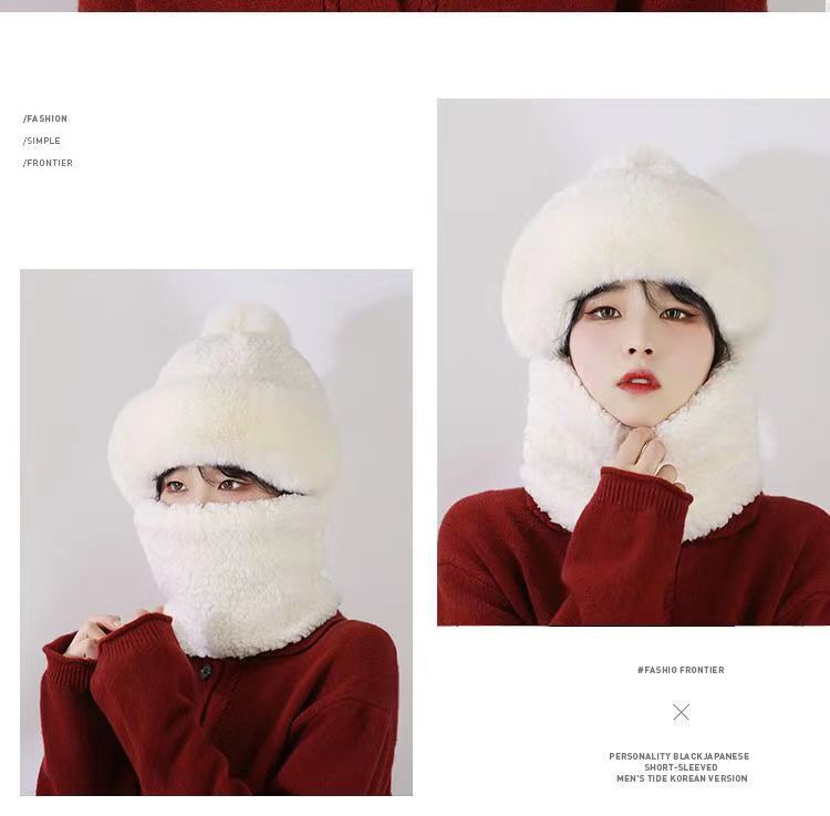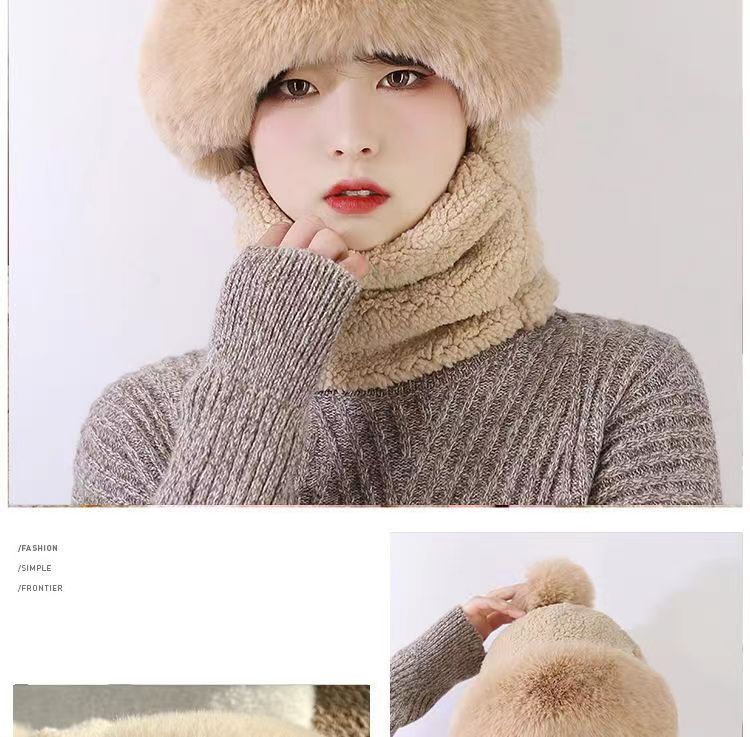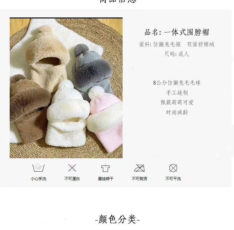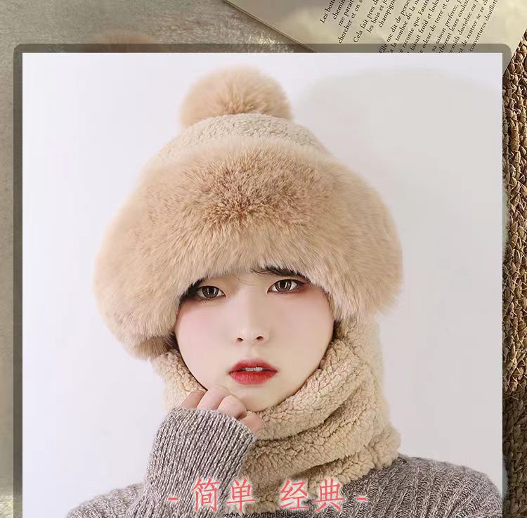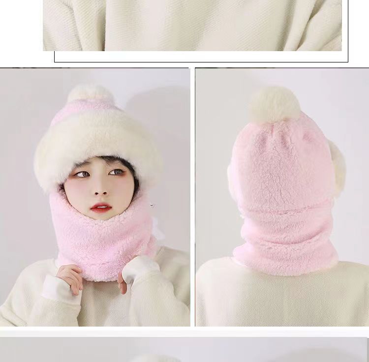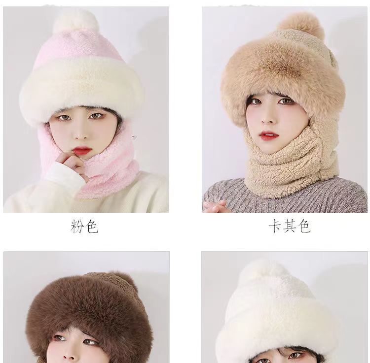 2024年熊帽子マフラー一体女性冬かわいい自転車電気自動車マフラー防風防寒