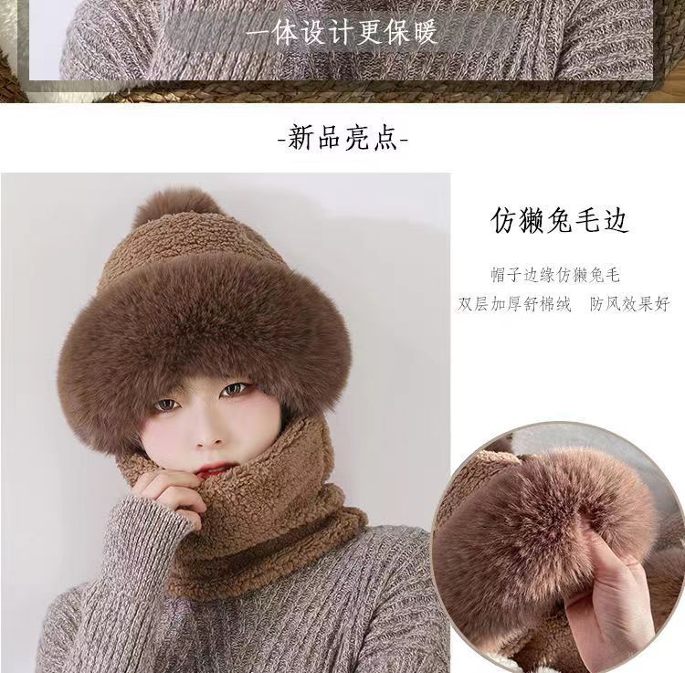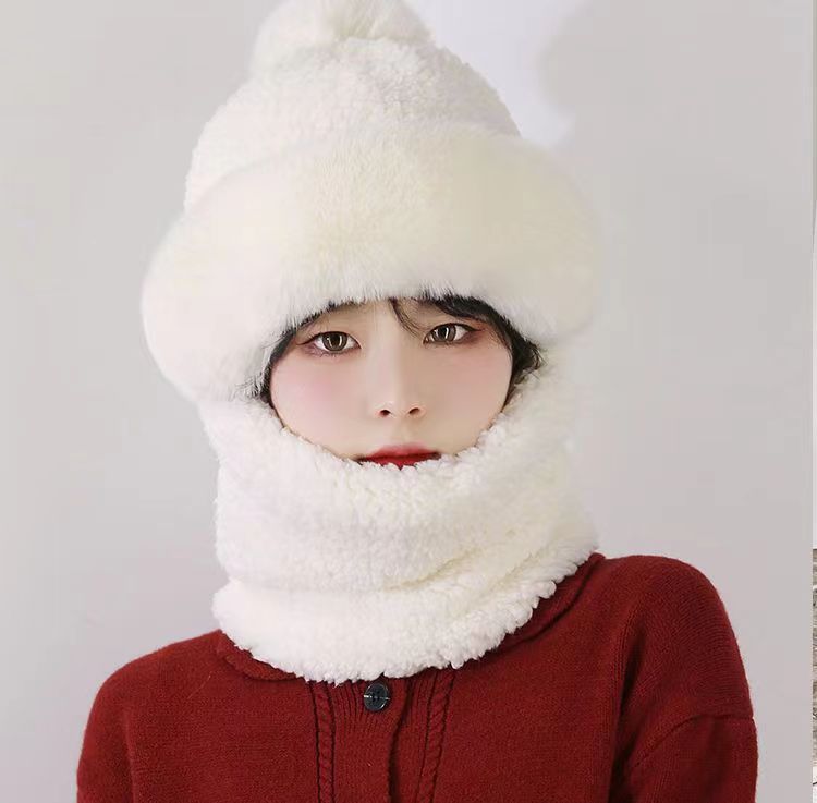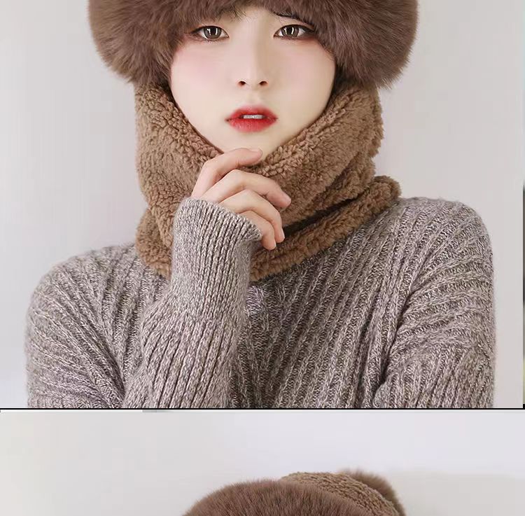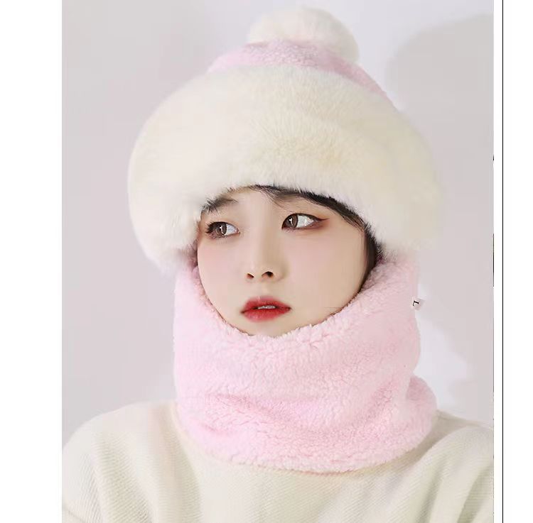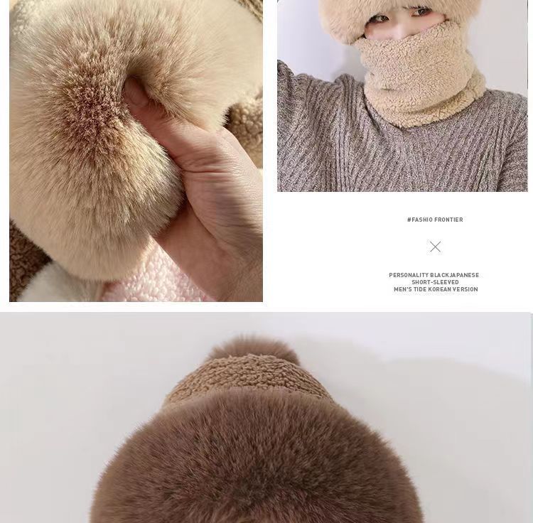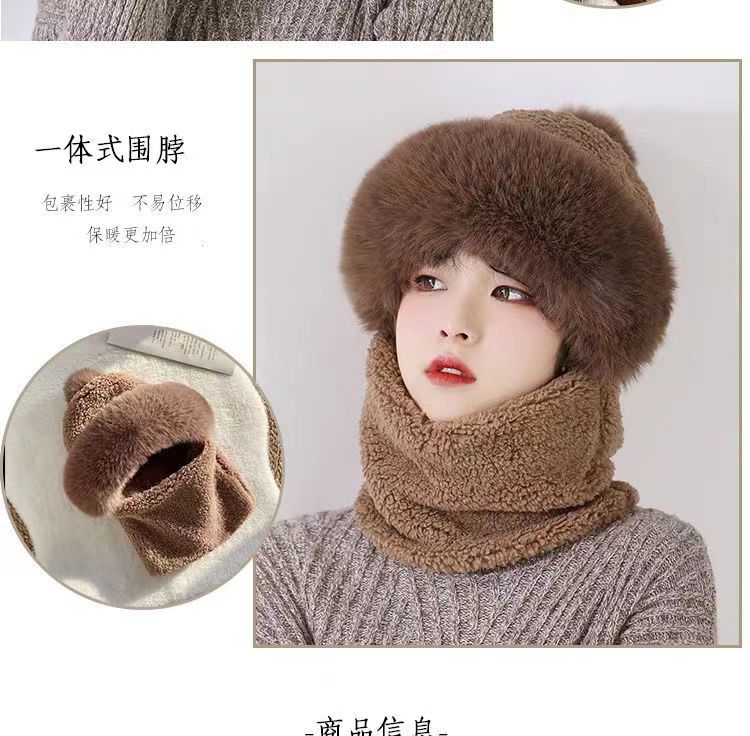 2024年熊帽子マフラー一体女性冬かわいい自転車電気自動車マフラー防風防寒