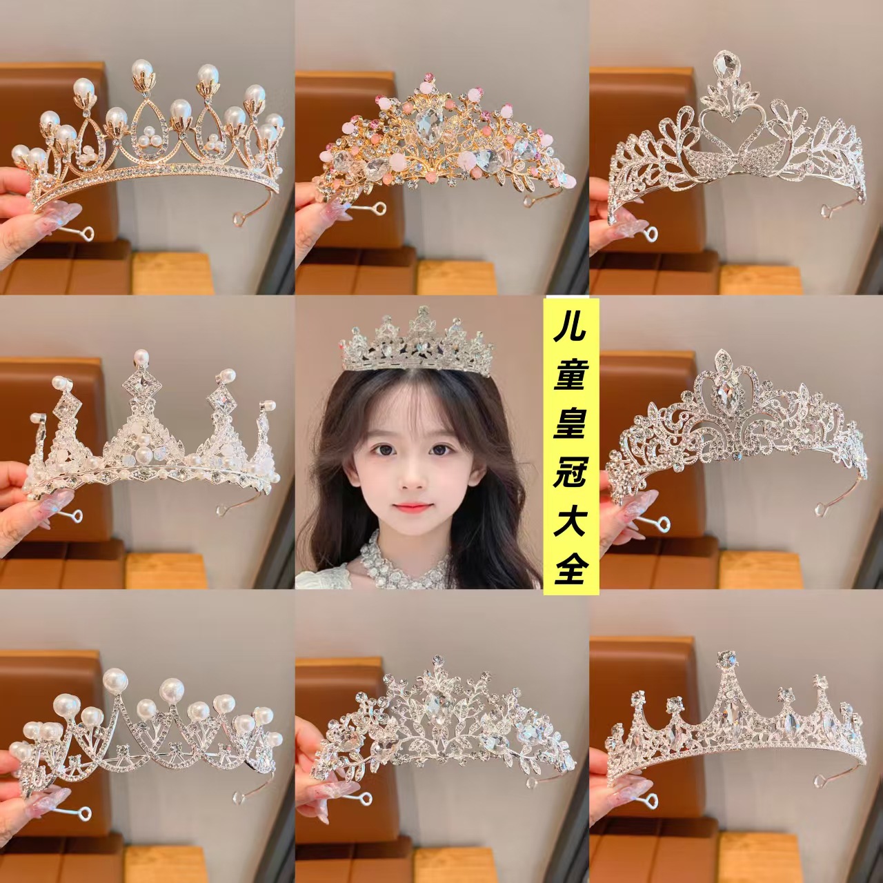 儿童皇冠头饰公主女童水晶珍珠王冠生日演出花童婚礼女孩发饰大全