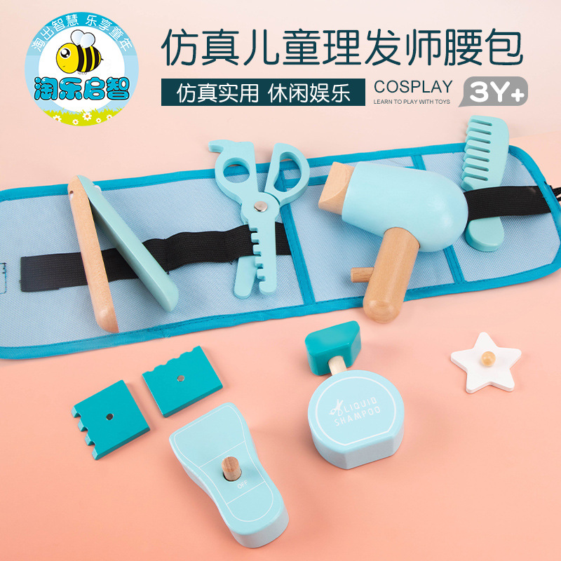 木製模造理髪バッグセット幼児と子供のロールプレイングヘアカットメイクアップツール赤ちゃんままごとのおもちゃ