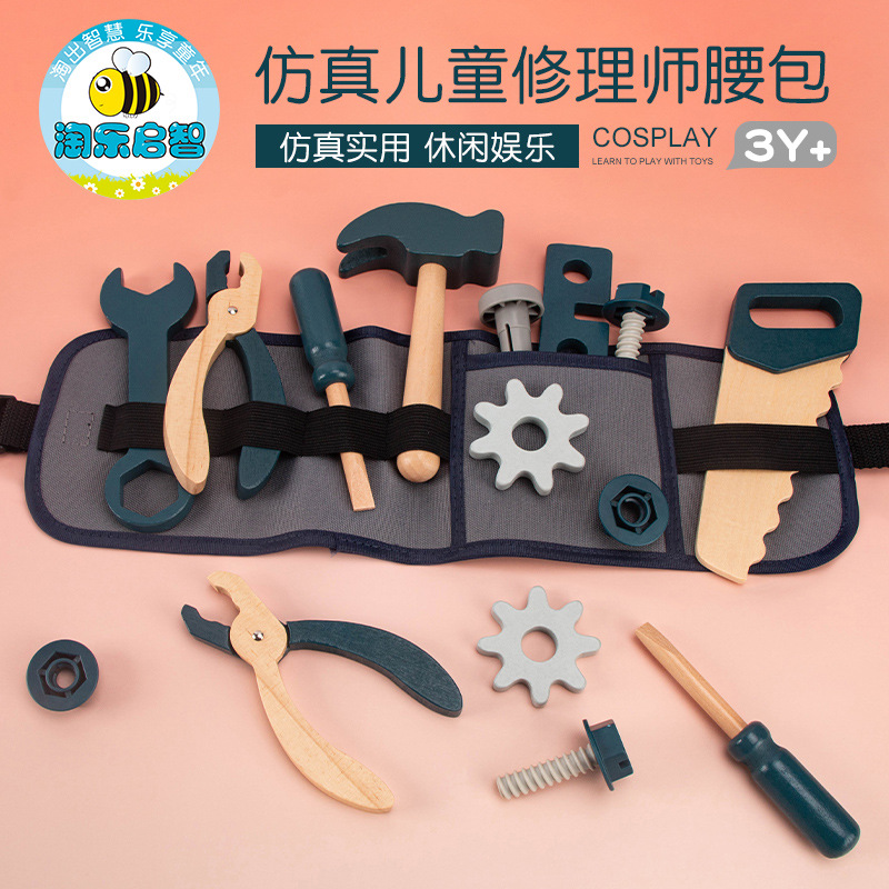 木製模擬子供用修理師用腰袋、赤ちゃんごっこ遊びシーンシミュレーション修理ツール、知育玩具、越境玩具