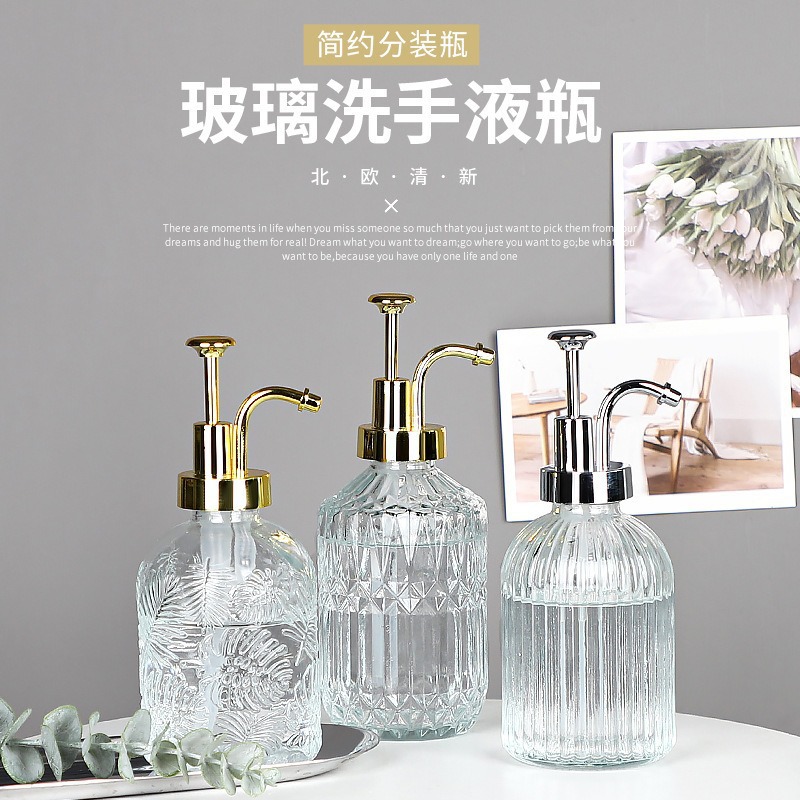 洗手液玻璃分装瓶子轻奢透明洗手液瓶沐浴露洗发水按压瓶酒店民宿