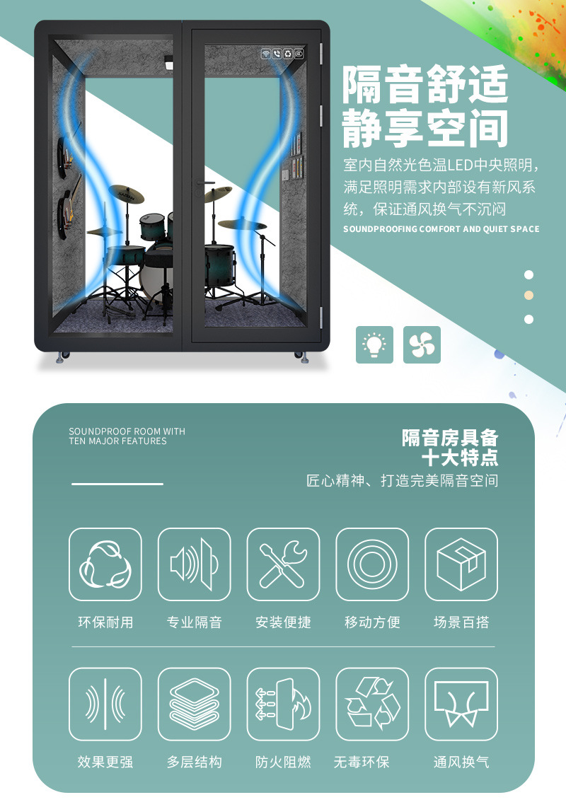 室内移動防音小型二人防音室オフィス直播間工場製品テスト防音室静音